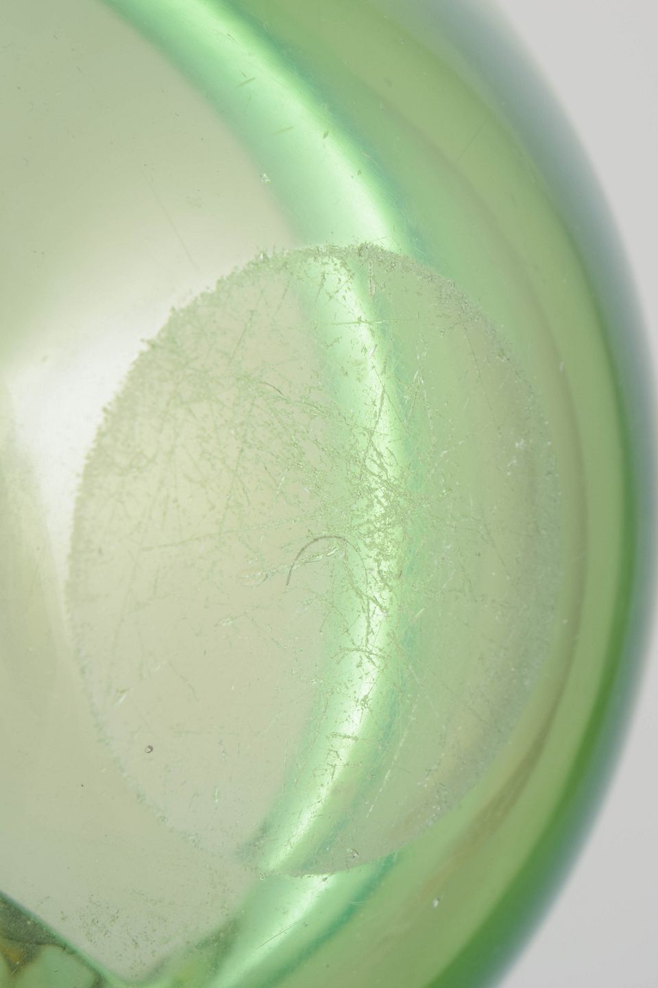 Murano skål.Organisk formet skål i mundblæst glas med bløde, afrundede linjer og transparent grøn farve med indlejrede nuancer i klart og gyldent glas.