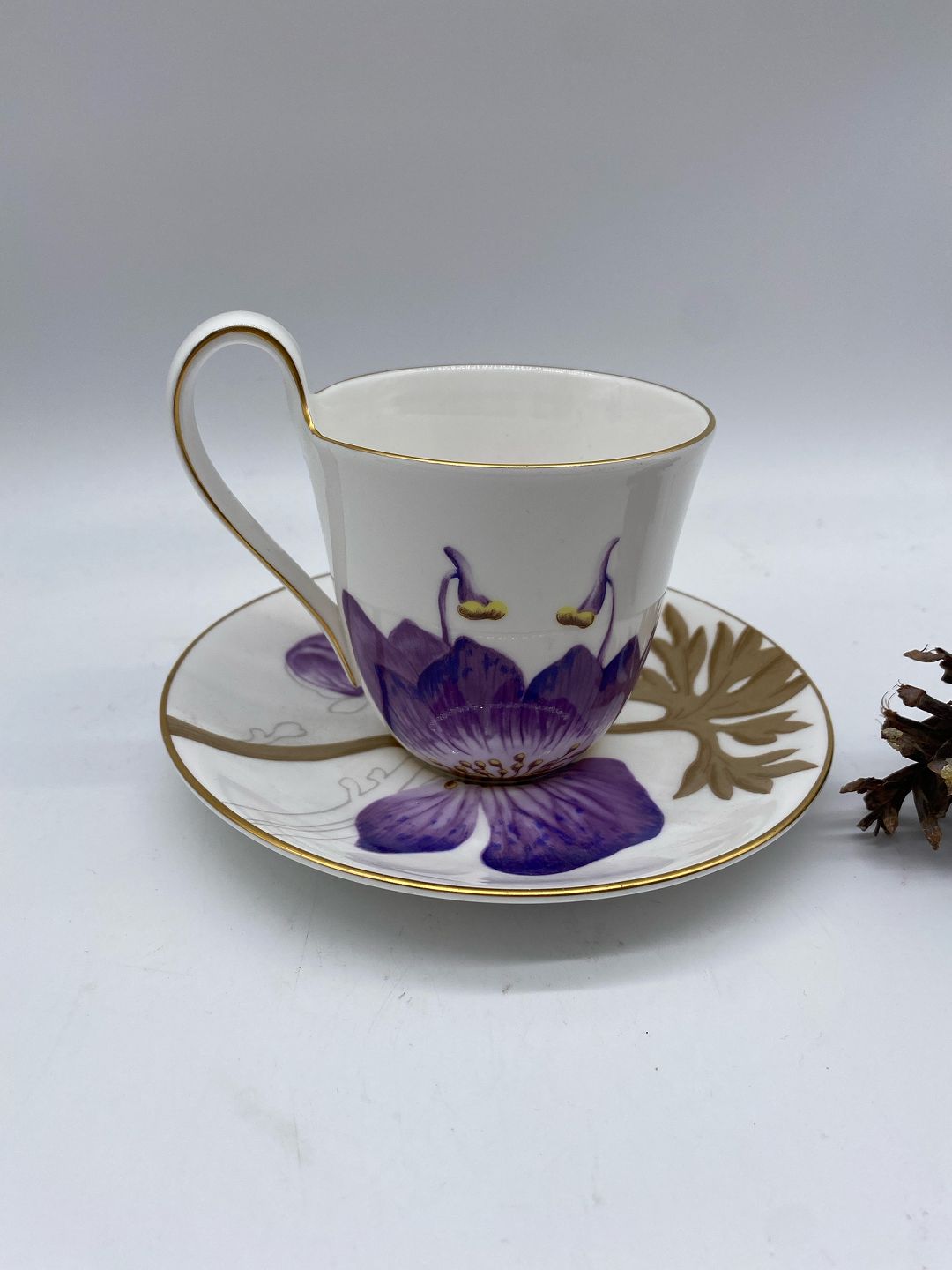 Royal Copenhagen Flora højhanket kop med underkop, motiv med stedmorblomst. Nr. 093 -094. 27cl. 1. sort. Hel og fin stand. Pris 350kr.