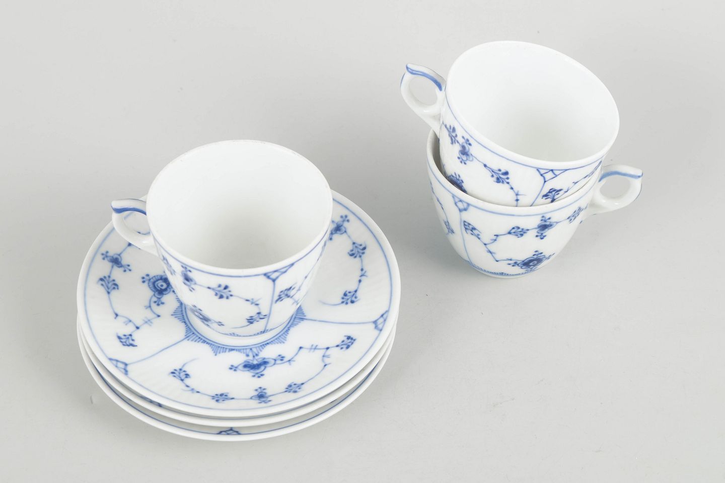 Royal Copenhagen Musselmalet Riflet, sæt af tre kaffekopper med underkopper.Beschreibung: