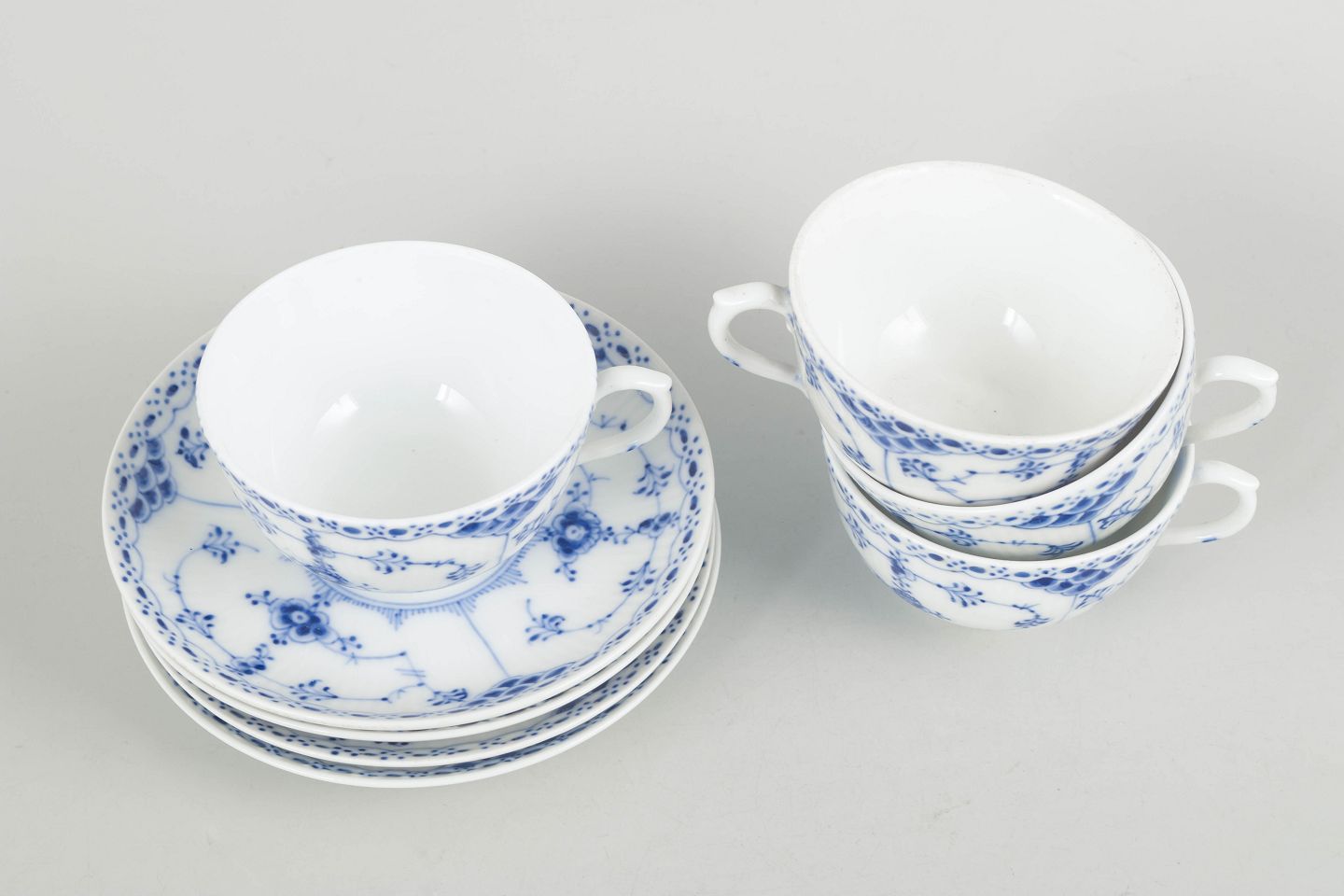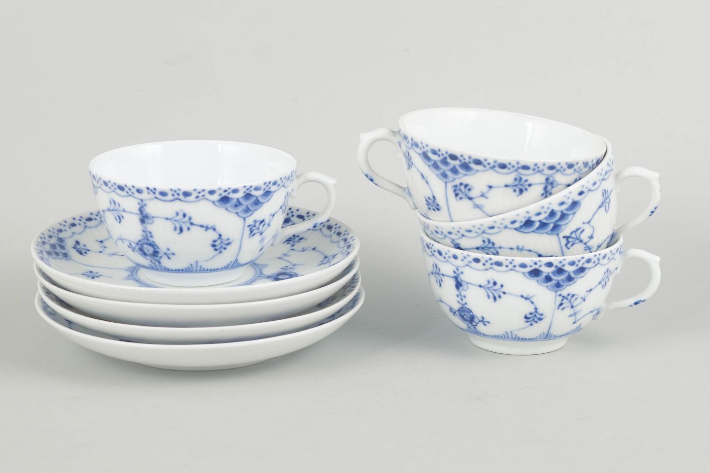 Royal Copenhagen Musselmalet Halvblonde kaffekopper med underkopper, sæt af fire.Beschreibung:
