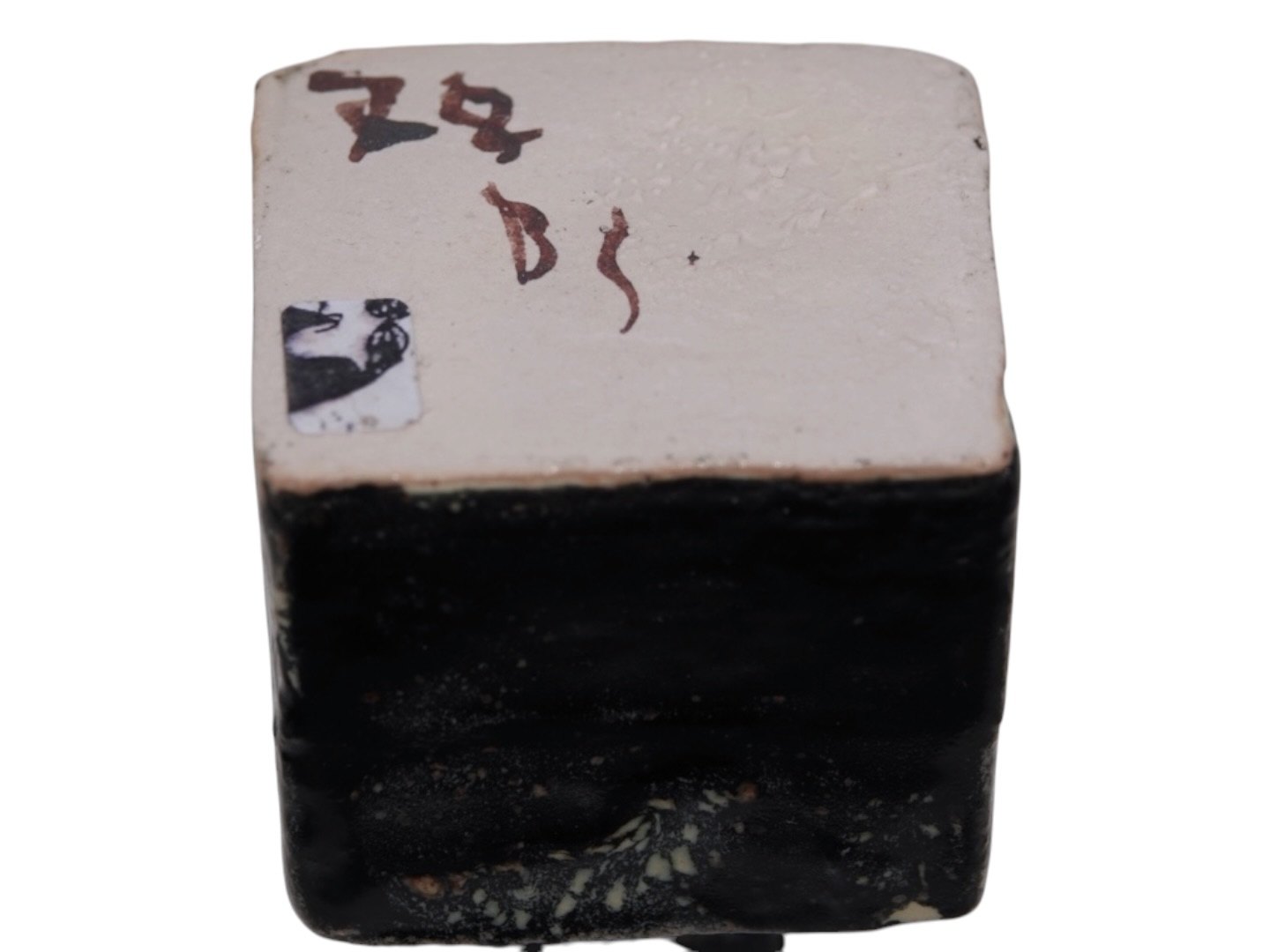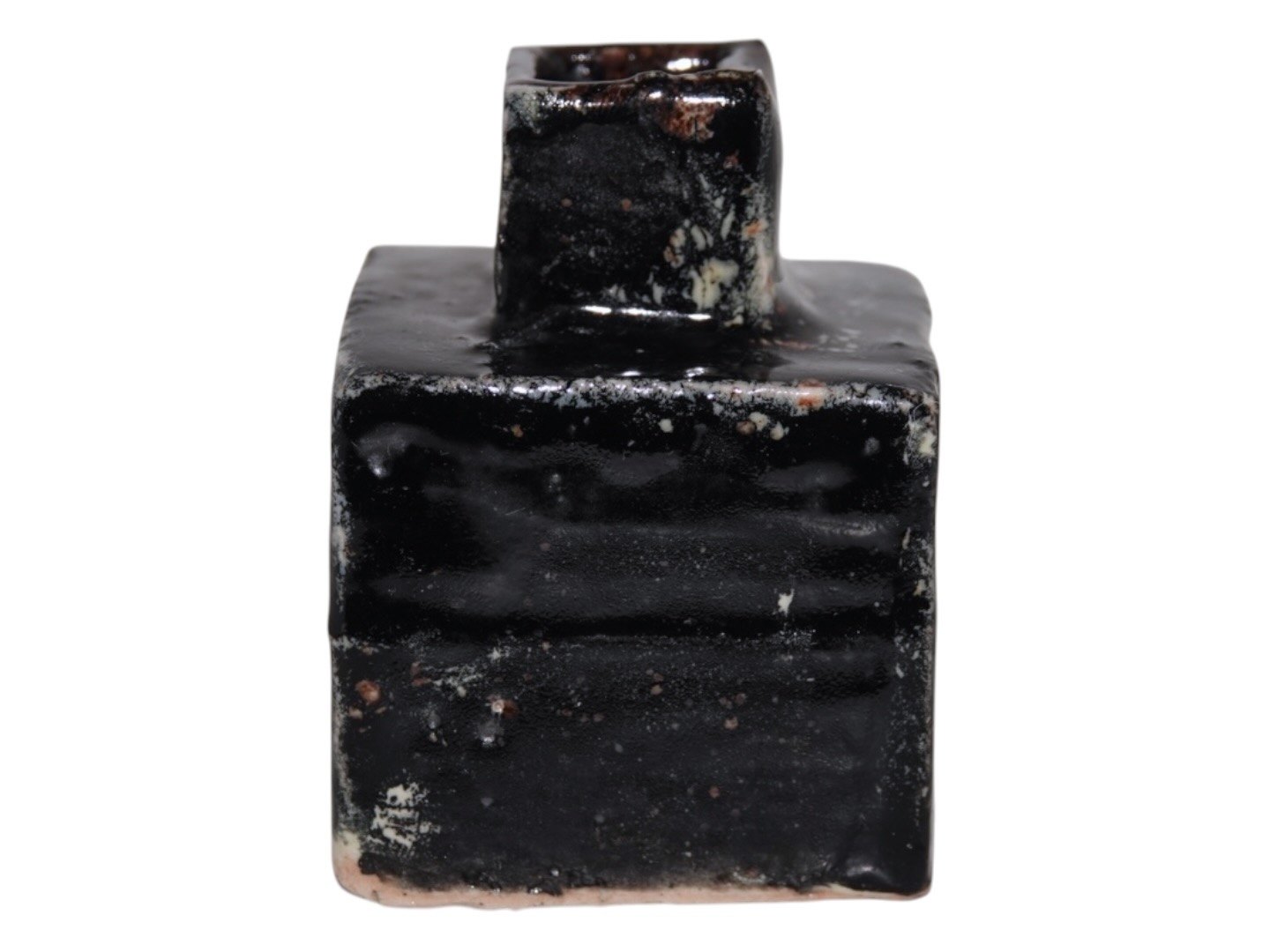 Bente Skjøttgaard keramik, firkantet miniature vase med sort glasur.Mærket med nummer 79.