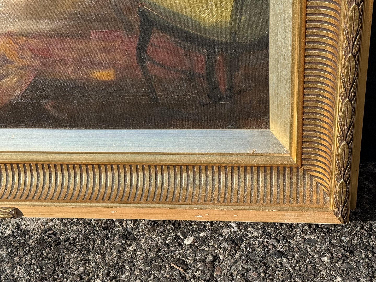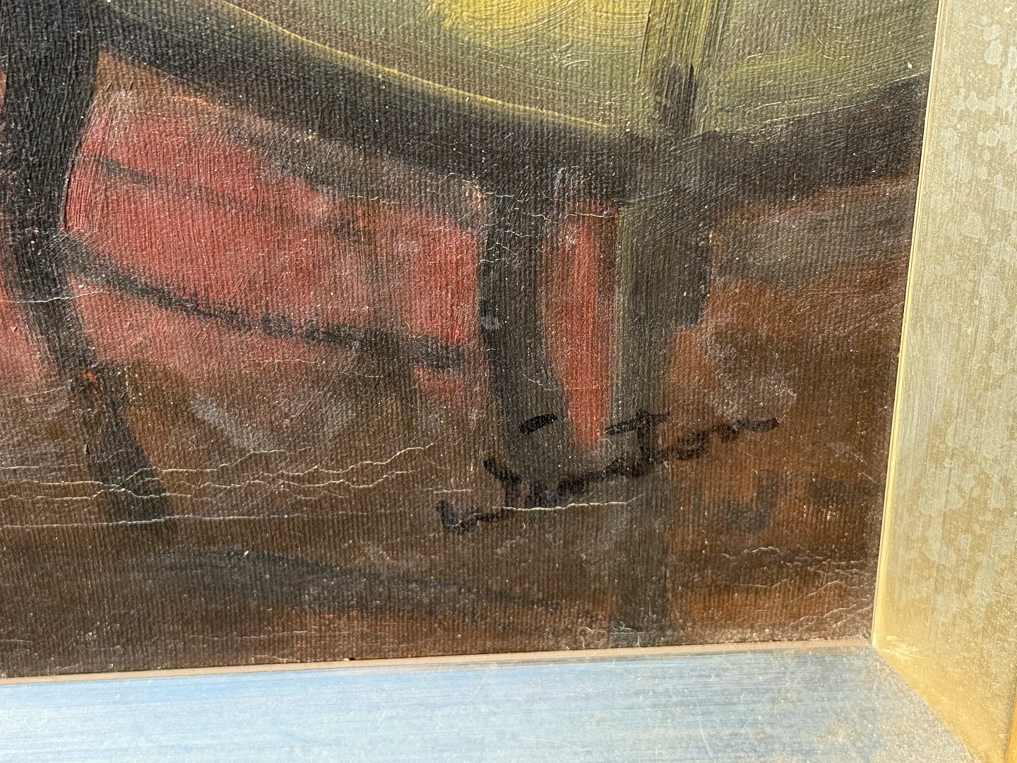 Frau im rosa Kleid am Klavier, Ölgemälde auf Leinwand, undeutlich signiert *hat einige Absplitterungen am Rahmen, ansonsten in gutem Zustand*Lager: 1