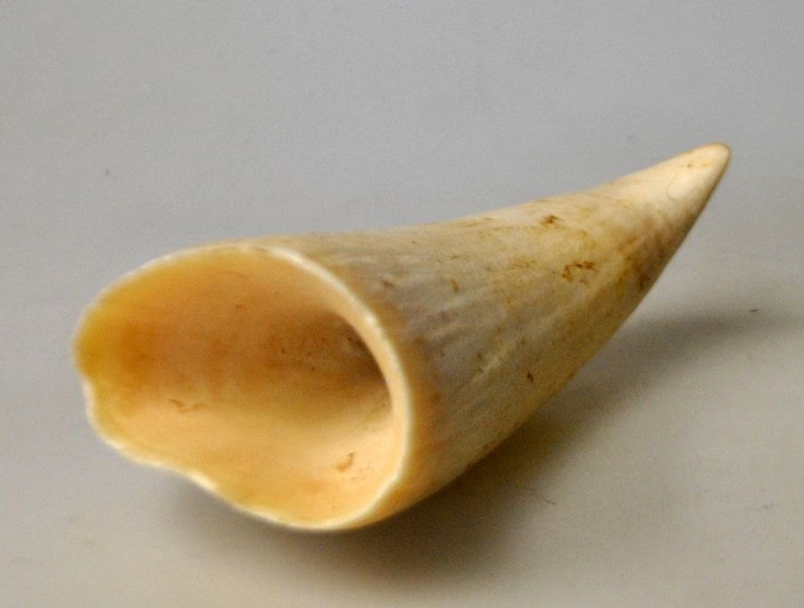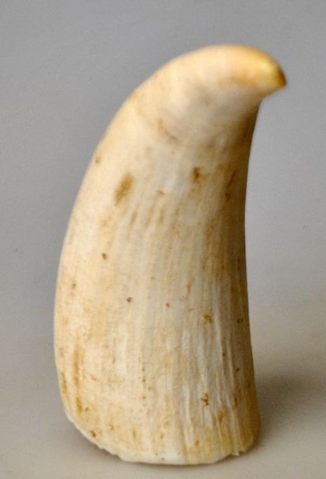 Zahn eines Grönländischen Pottwals, 20. Jahrhundert. Länge: 11 cm.Mitgebracht von einem Dänen, der in Grönland gearbeitet hatte.