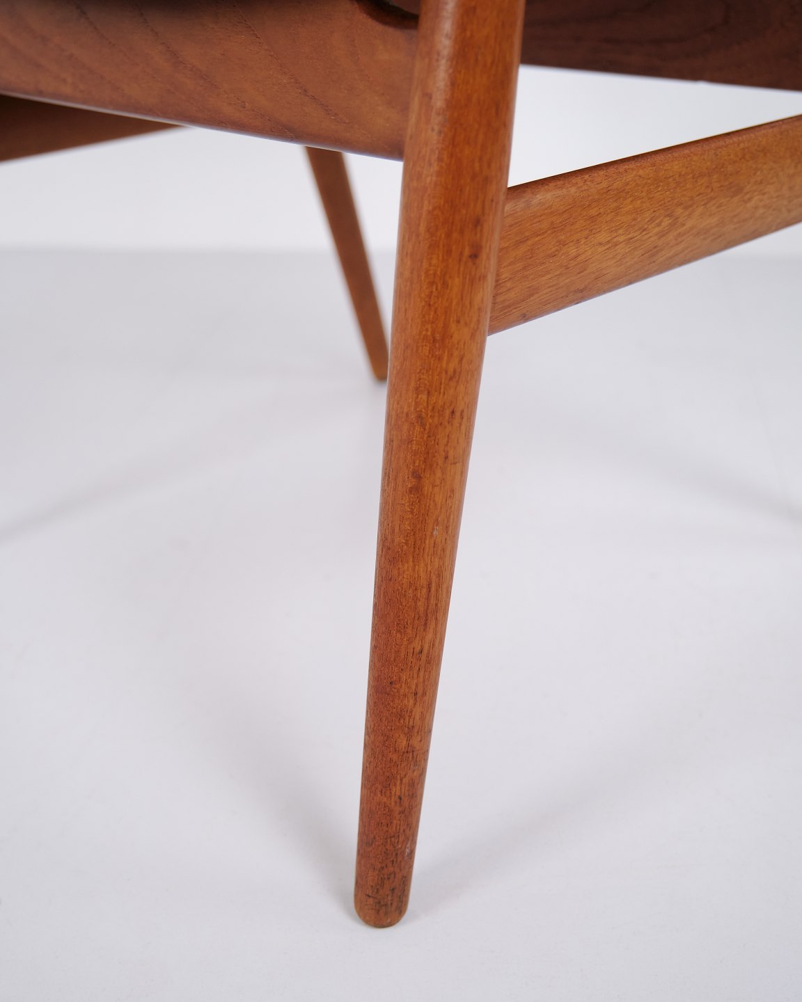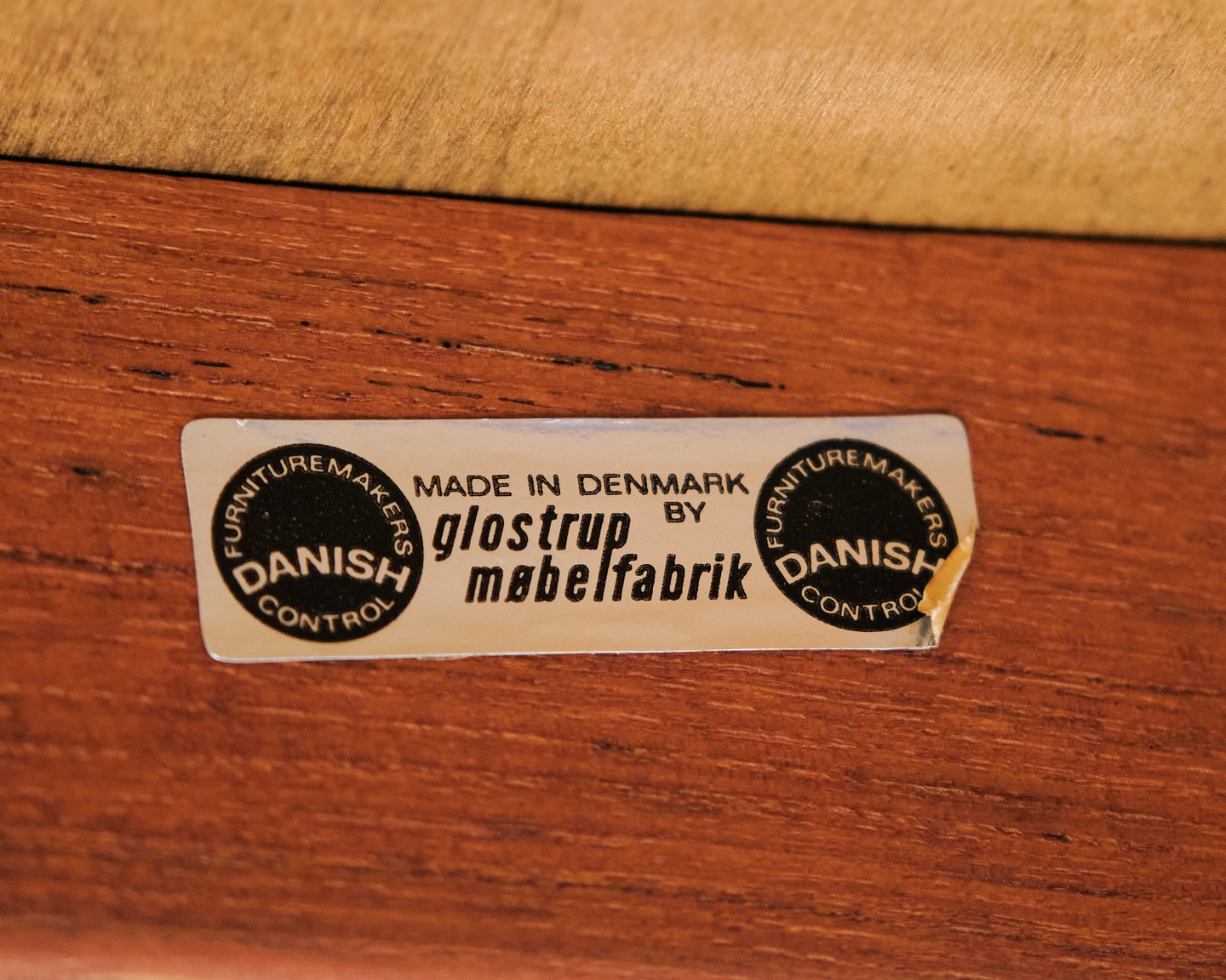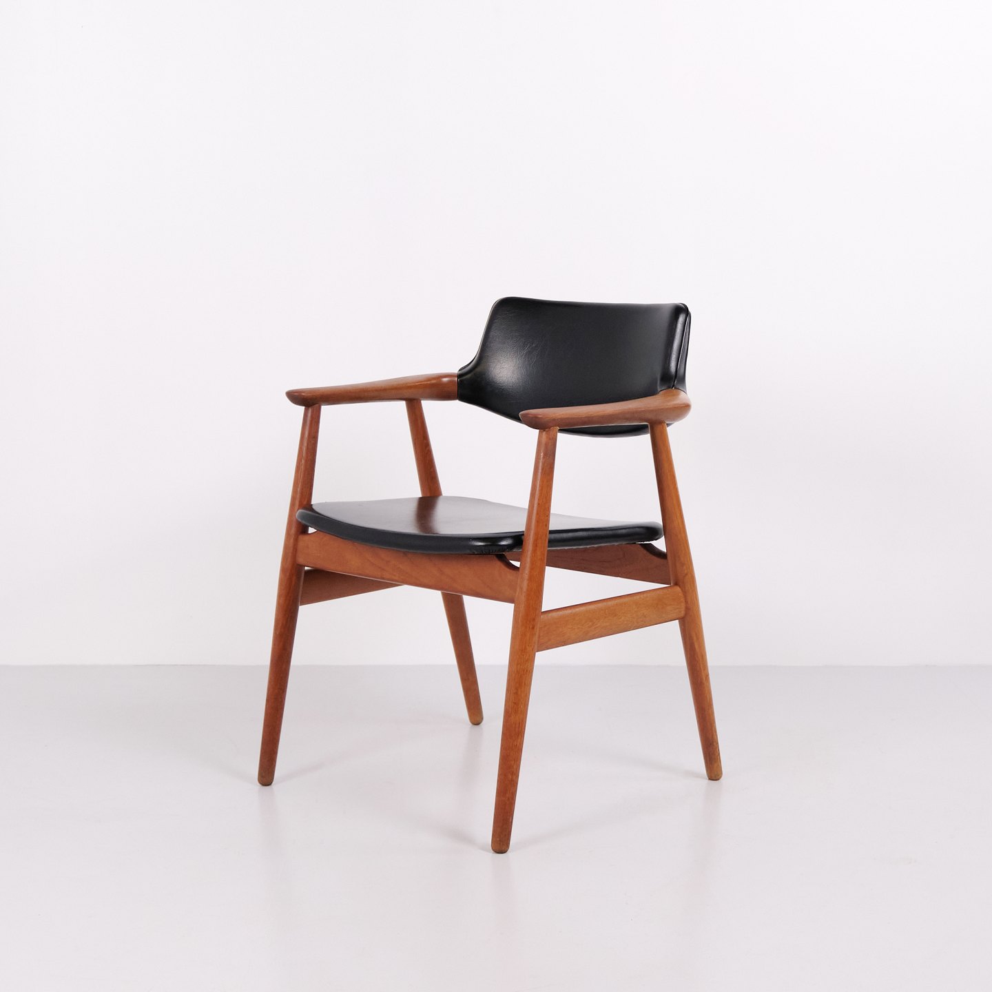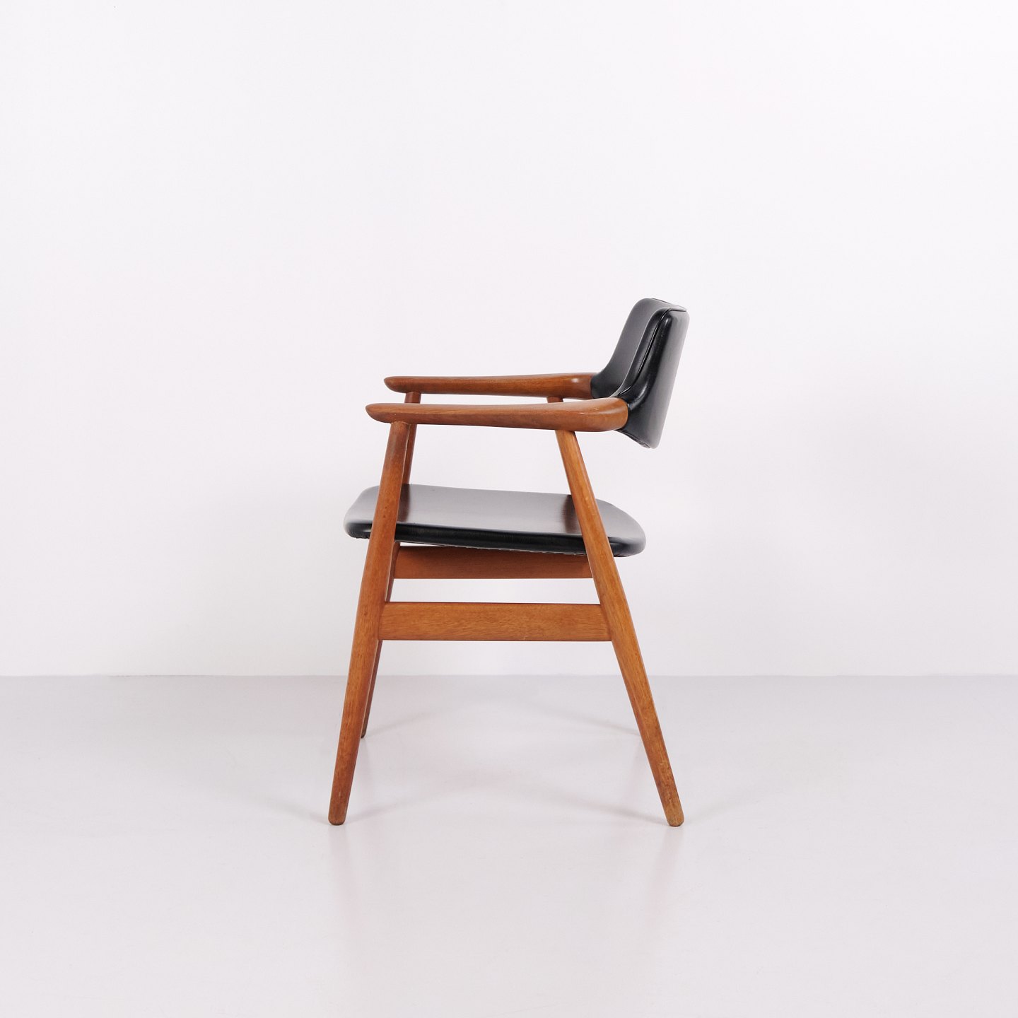 Satz von 6 GM11 Esszimmerstühlen, entworfen von Svend Aage Eriksen für Glostrup Møbelfabrik in den 1960er Jahren. Aus massivem Teak gefertigt mit Sitz- und Rückenflächen aus schwarzem Leder. Das Modell GM11 ist bekannt für organische Linien, leicht geschwungene Armlehnen und hohen Sitzkomfort. Ein klassisches Beispiel für dänisches Mid-Century Design mit hochwertiger Tischlerarbeit und eleganten Proportionen. Wird nur als komplettes Set verkauft.— Herkunft: Dänemark
