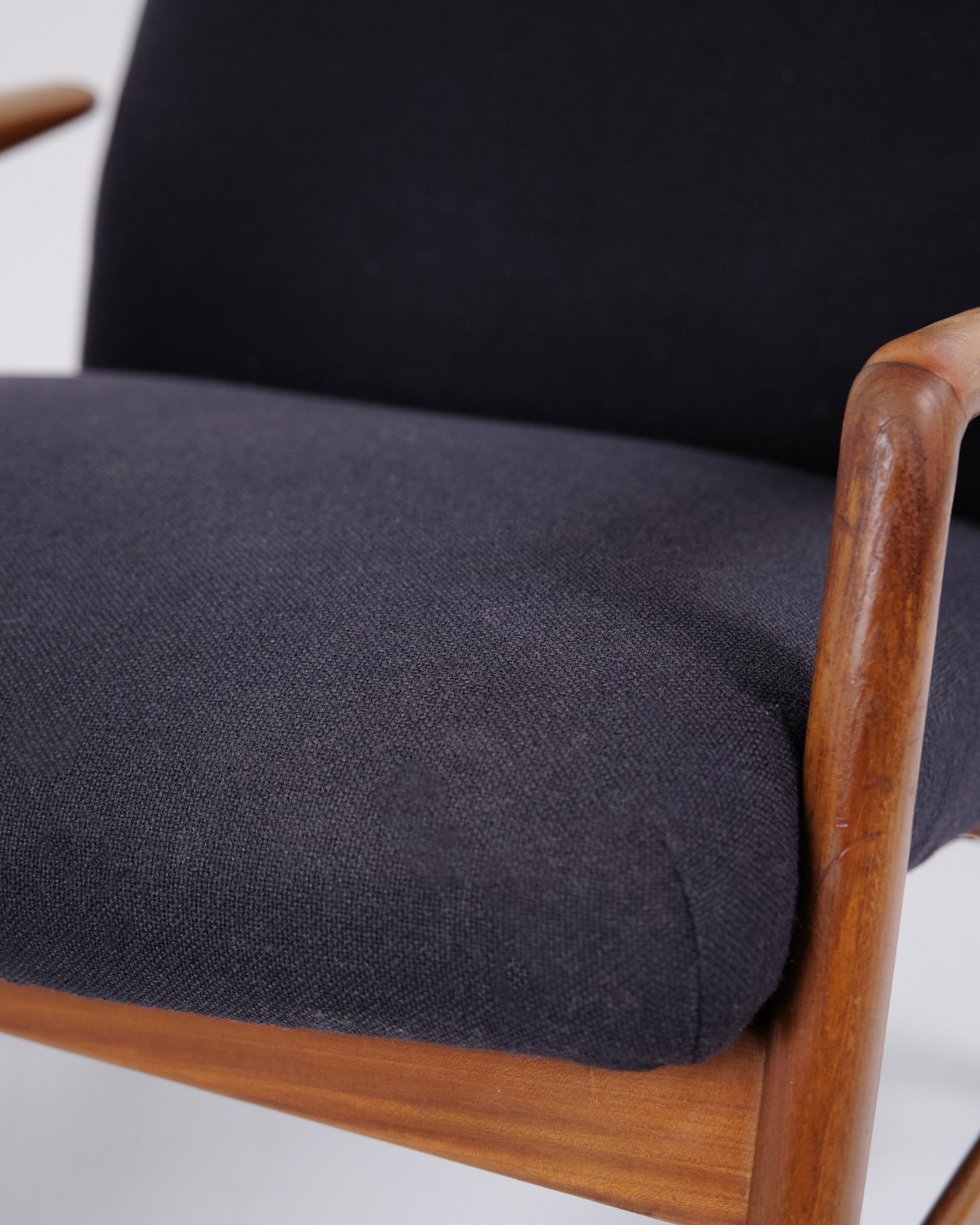 Contour Set 327 Sessel entworfen von Alf Svensson für Ljungs Industrier AB, Schweden. Gestell aus Teak mit originaler Polsterung. Die Rückenlehne ist in drei verschiedenen Positionen verstellbar. Originales Etikett unter dem Sitz erhalten. Alf Svensson war ein schwedischer Möbeldesigner, aktiv von den 1950er bis 1970er Jahren, bekannt für Möbel im skandinavischen Modernismus.— Herkunft: Schweden
