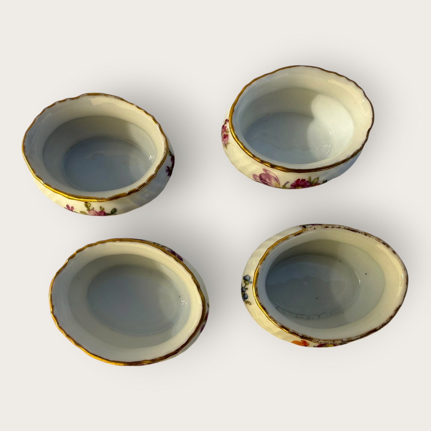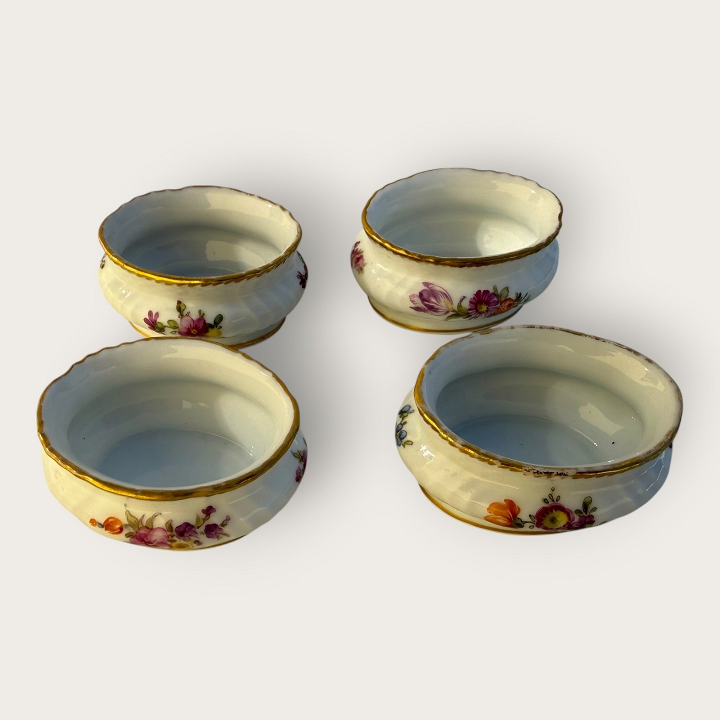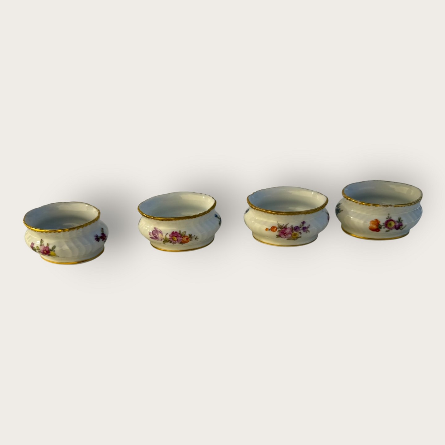 Royal Copenhagen, Vollsächsische Blume, kleine Salzschale, Nr. 4/1646, Maße: 6x3cm *Eines mit leichten Gebrauchsspuren am Goldrand, sonst in gutem Zustand*Lager: 4