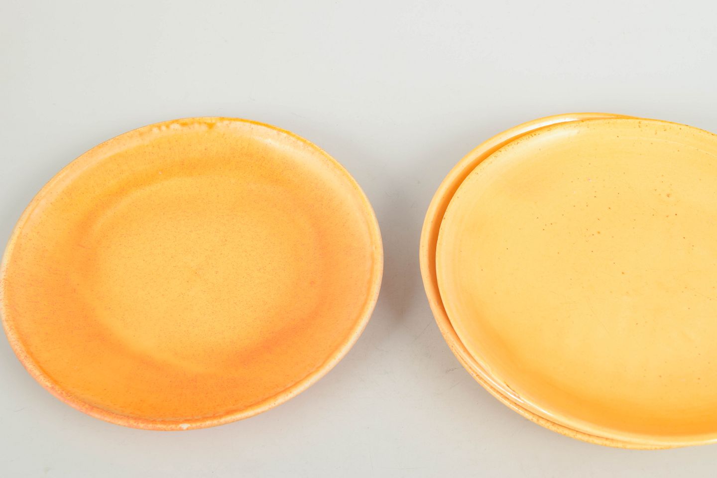 Kähler, sæt af fire tallerkener.Fire keramiske tallerkener med uranholdig glasur i varme gyldne toner, fremstillet hos Kähler i 1930’erne.