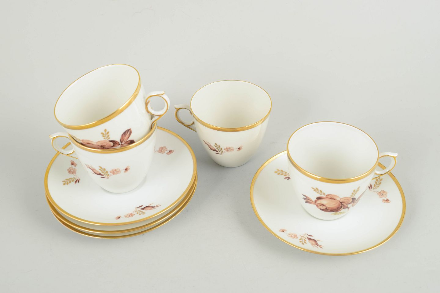 Royal Copenhagen brun rose, sæt af fire kaffekopper med underkopper.Beschreibung: