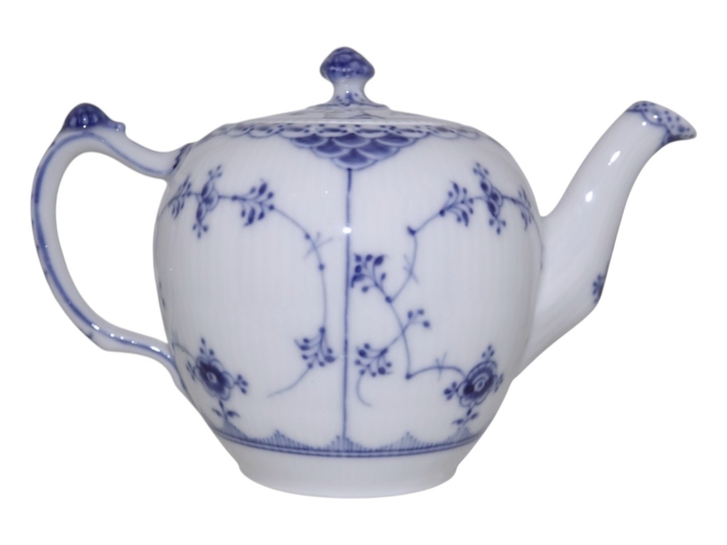 Royal Copenhagen Musselmalet Halvblonde, lille tekande.Fabriksmærket viser, at denne er produceret i mellem 1898 og 1923.