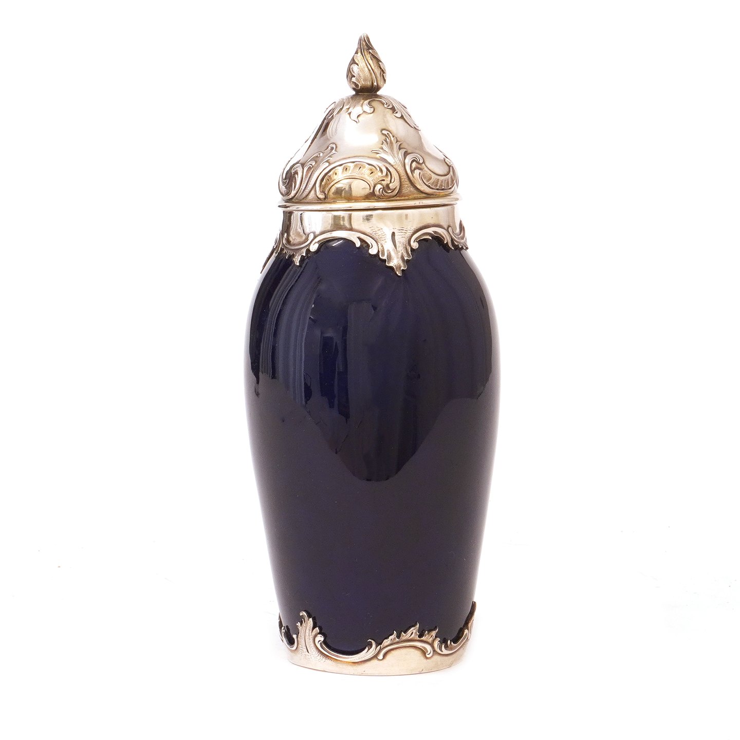Frühe Porzellanvase von Royal Copenhagen mit Silbermontierung von A. Michelsen datiert 1903H: 18cm