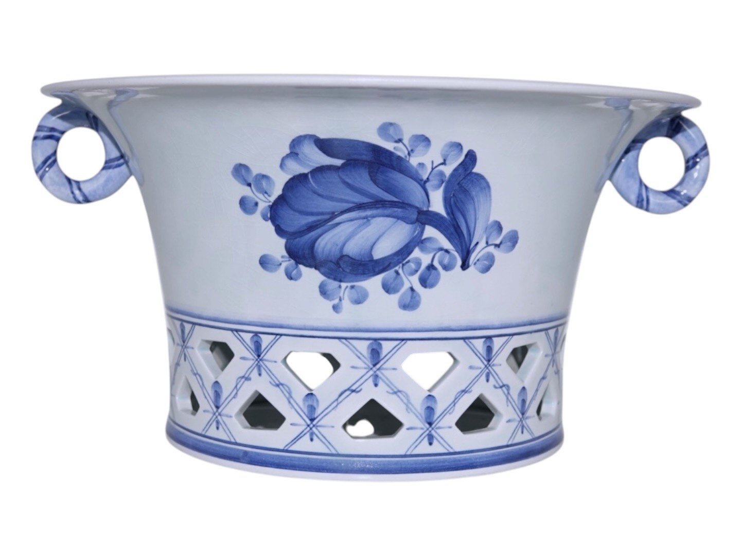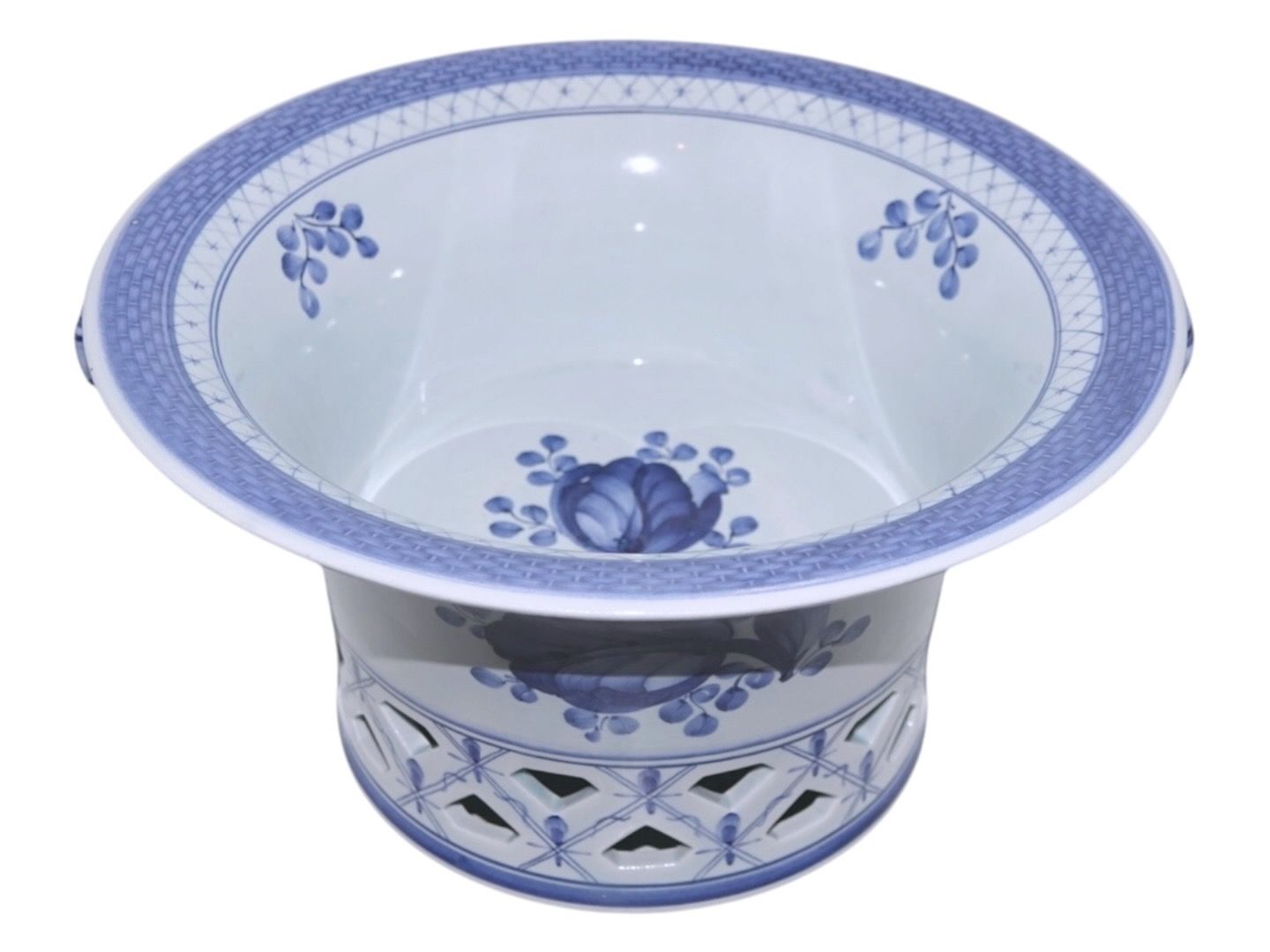 Aluminia Tranquebar, stor og sjælden skål med gennembrudt kant.Dekorationsnummer 11/1147.