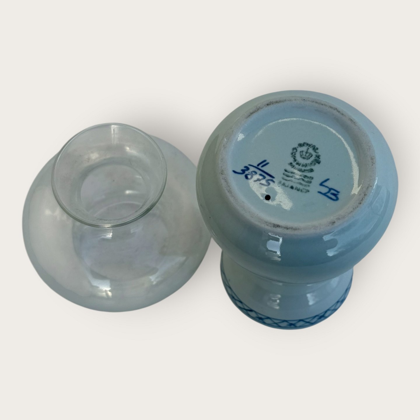 Royal Copenhagen, New Trankebar, Teelichthalter mit Glaskuppel, 1. Wahl, Nr. 11/3875, 17 cm hoch, 7,5 cm Durchmesser, Design Christian Joachim *Guter Zustand*Lager: 2