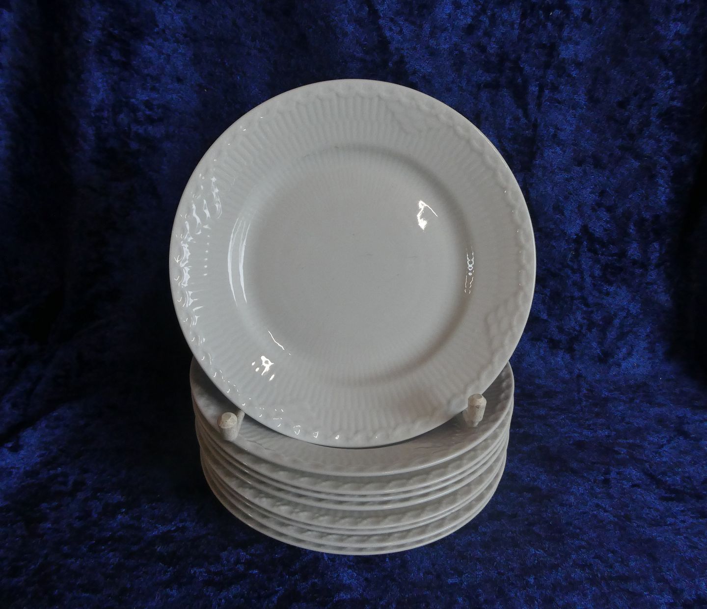 Weisse Halbspitze Porzellan Geschirr aus Royal Copenhagen, Dänemark. Königliches Porzellan.Set von 9 Kuchenteller ohne Nr. aus 2. Wahl in gutem, gebrauchtem Zustand
