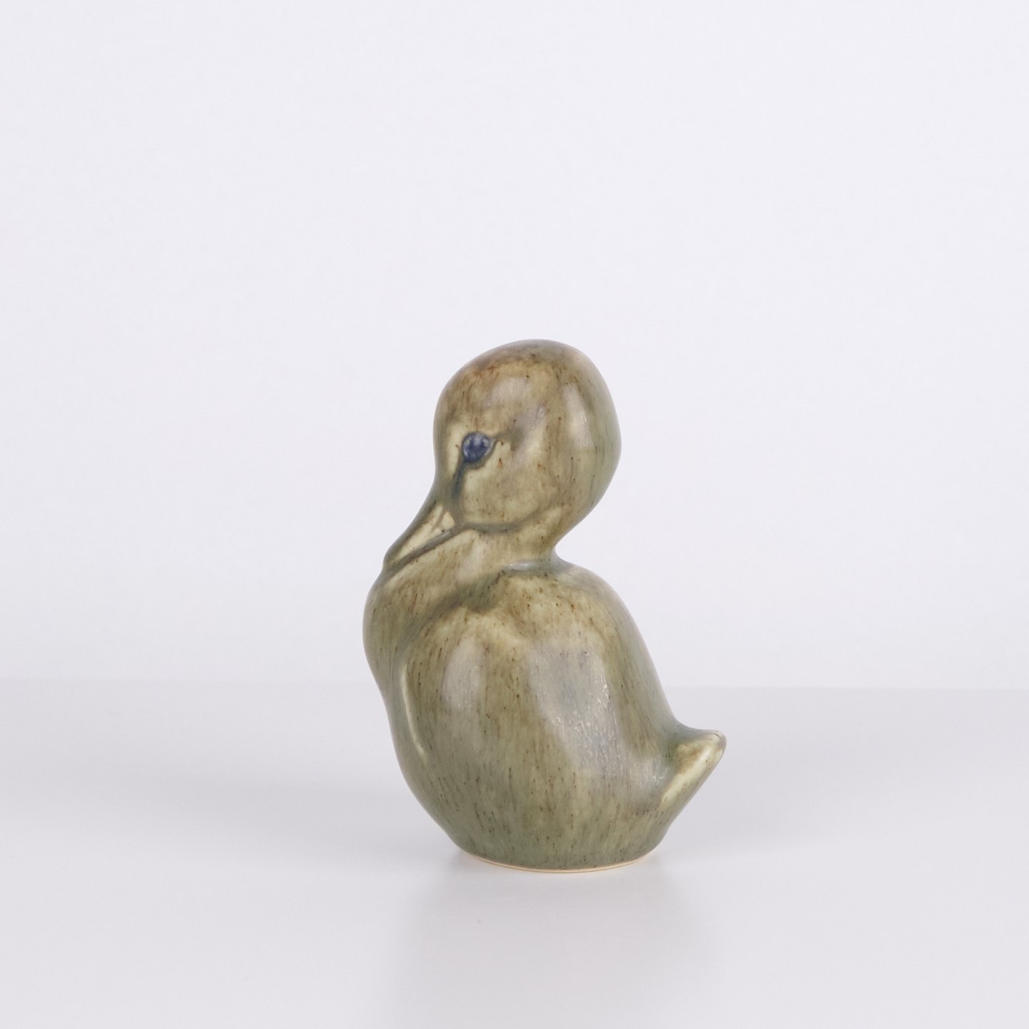 Entenfigur von Knud Basse aus glasierter Keramik. Die Figur wurde in den 1960er Jahren in Dänemark hergestellt. Knud Basse ist bekannt für keramische Tierfiguren mit Vogel- und Naturmotiven aus dieser Zeit.