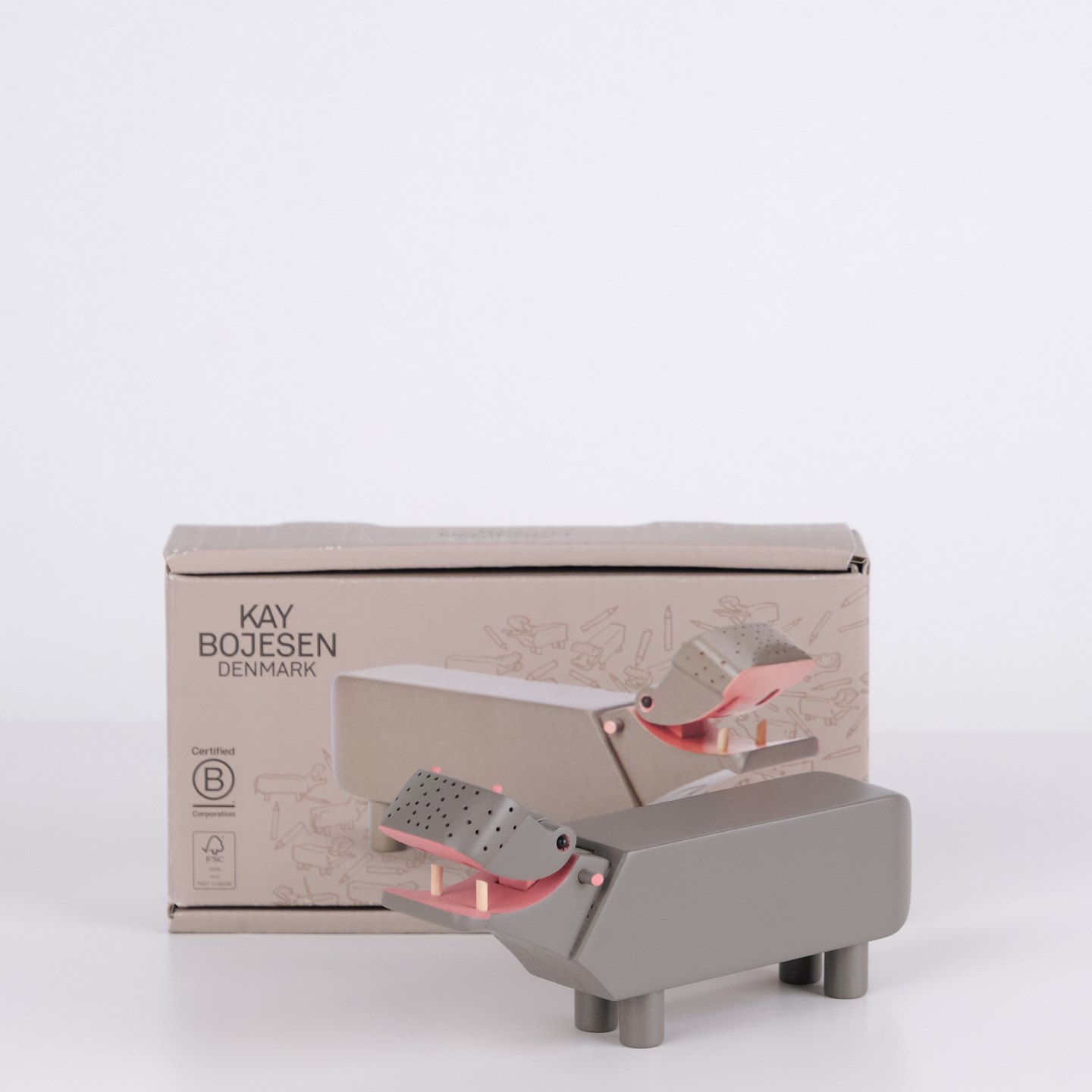 Lilliput Nilpferd entworfen von Kay Bojesen mit grauer Lackierung. Jubiläumsausgabe zur Feier des 70-jährigen Jubiläums des originalen Nilpferds von 1955. Gefertigt aus FSC-zertifiziertem Buchenholz und in kleinerem Format als die klassische Version hergestellt. Kay Bojesens Holztierfiguren zählen zu den bekanntesten Designobjekten des dänischen Designs und sind beliebte Sammlerstücke.— Herkunft: Dänemark