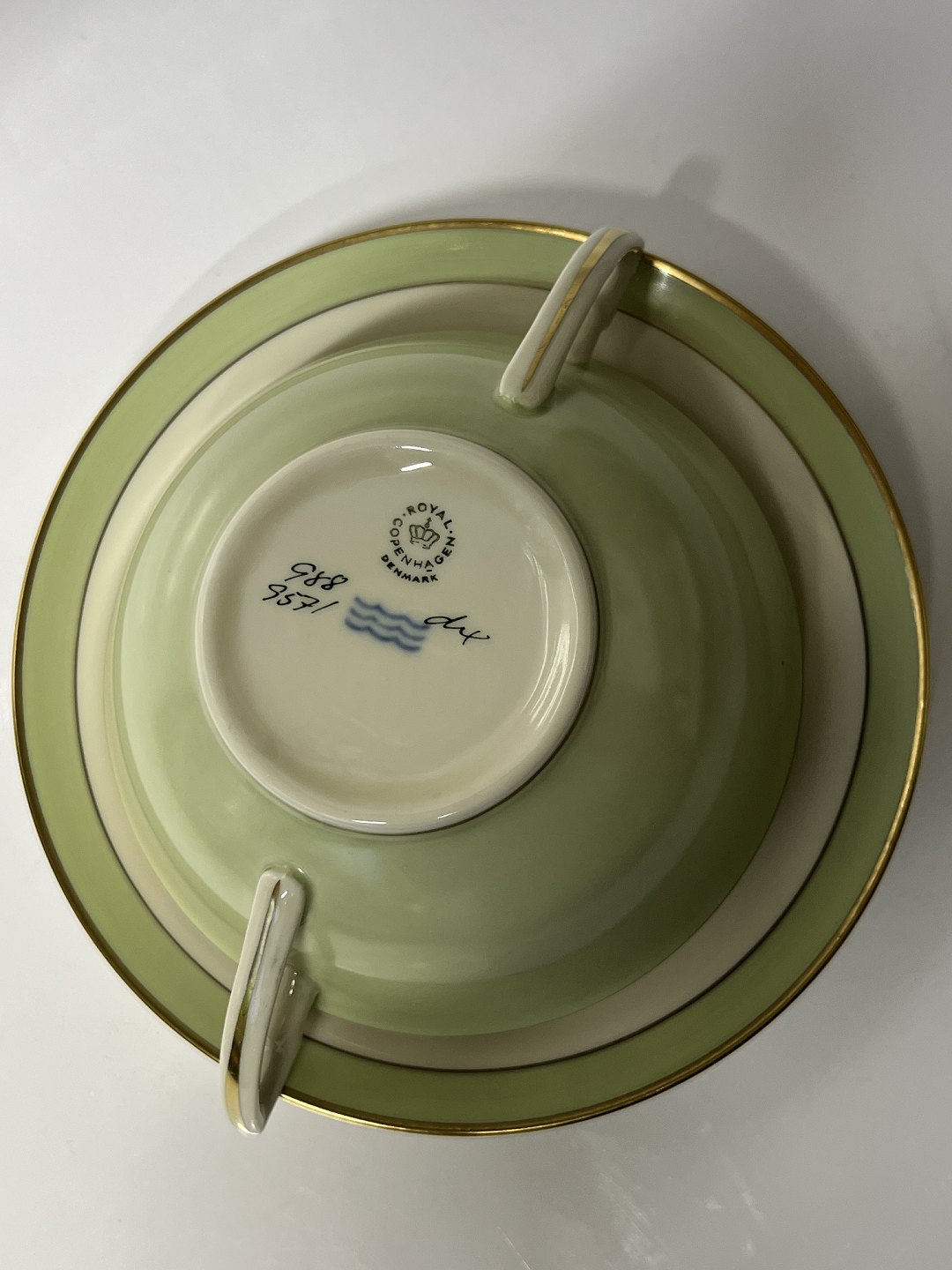 Royal Copenhagen Dagmar bouillonkop med tilhørende underkop.Dek. Nr. 988/9571.