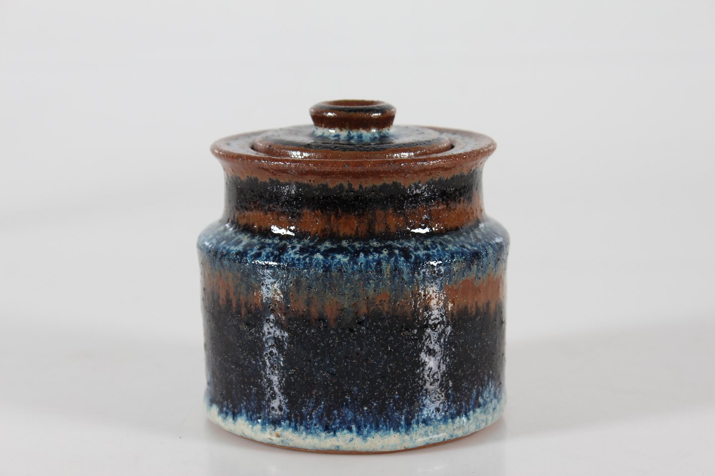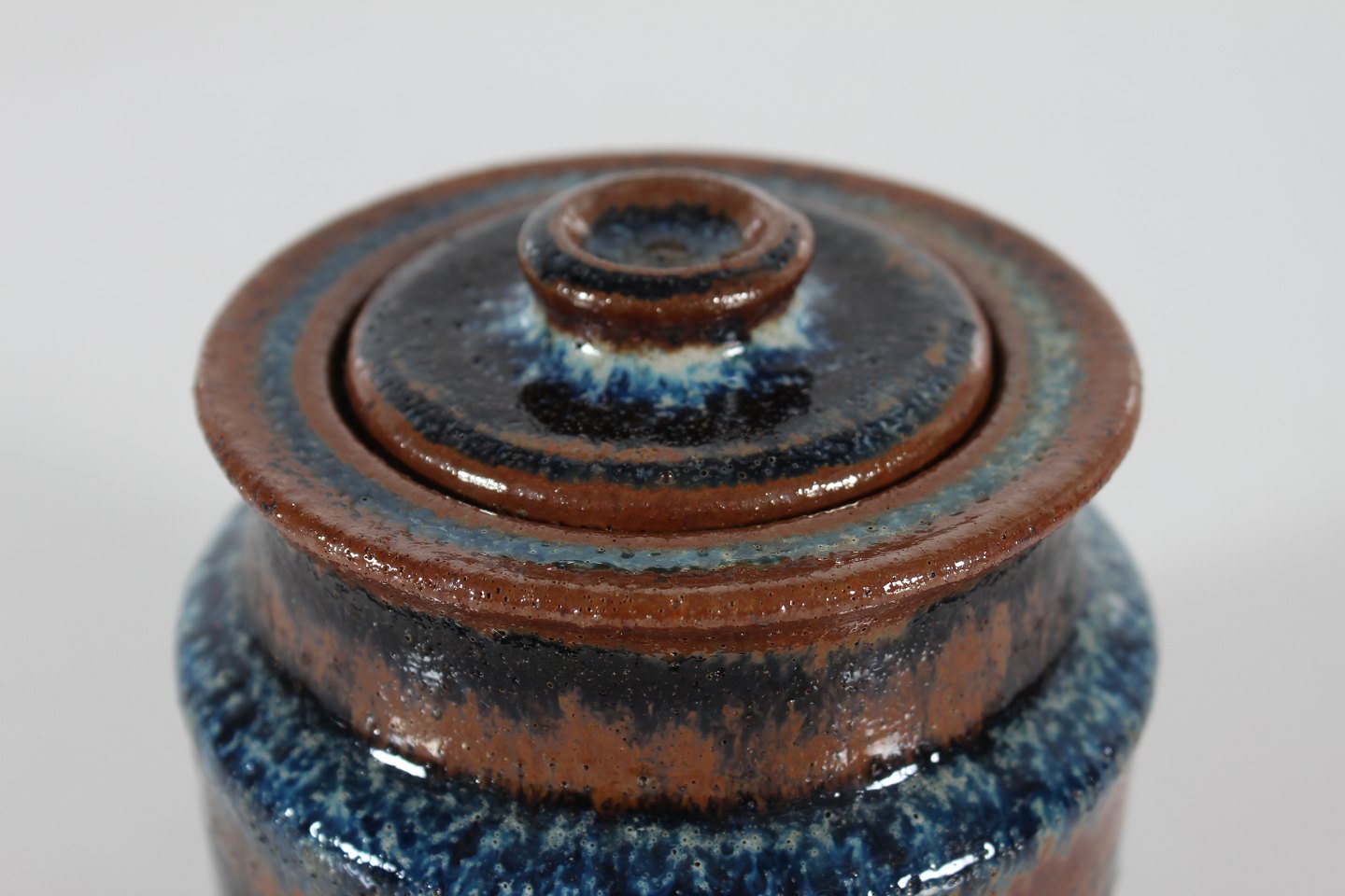 Gunver Bilde (1931-2018)Lågkrukke af stentøj i rustik stil