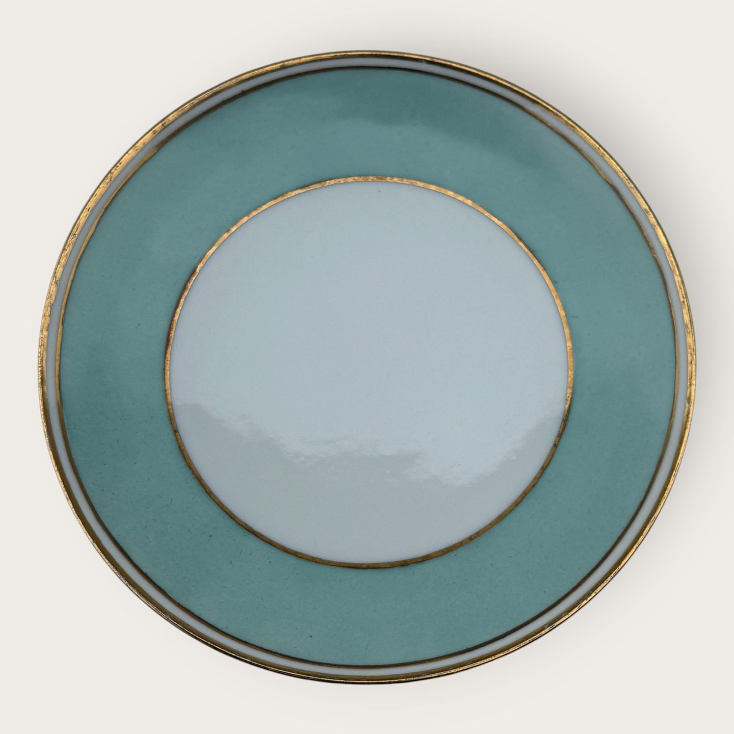 Bing & Grondahl, Form 643 mit breitem türkisfarbenem Dekor und Goldrand, Kuchenplatte, Durchmesser 15 cm, 1. Wahl, *guter Zustand*Lager: 6