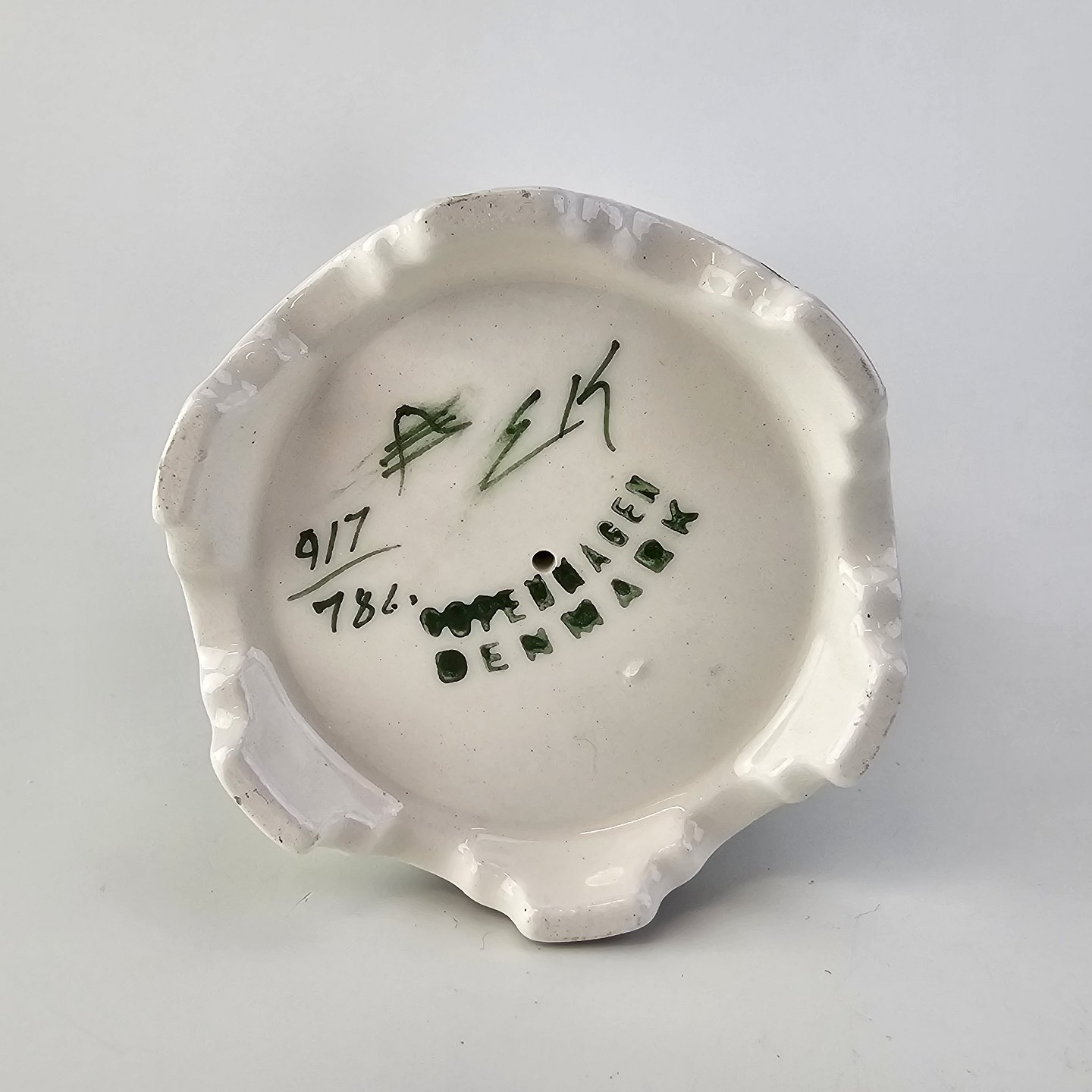 Figur i fajance med motiv af en faun på en opsats med malet blomstermotivNr. 917/786