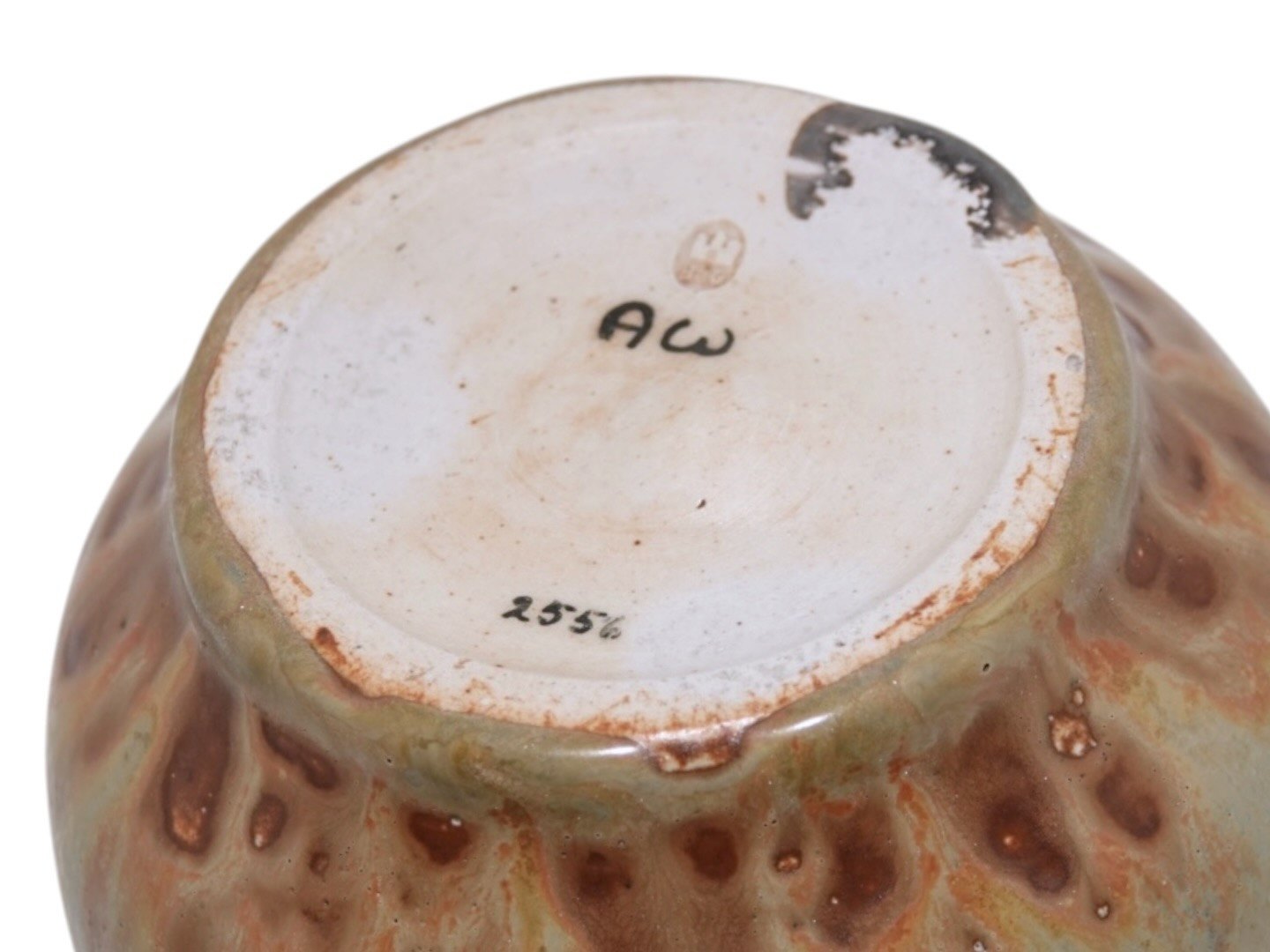 Bing & Grøndahl keramikvase, signeret AW for Hans Ancher Wolfsen (1870–1924). Wolfsen overtog Søholm i 1887 sammen med sin bror og spillede en væsentlig rolle i fabrikkens kunstneriske og håndværksmæssige udvikling.Designnummer 2556.