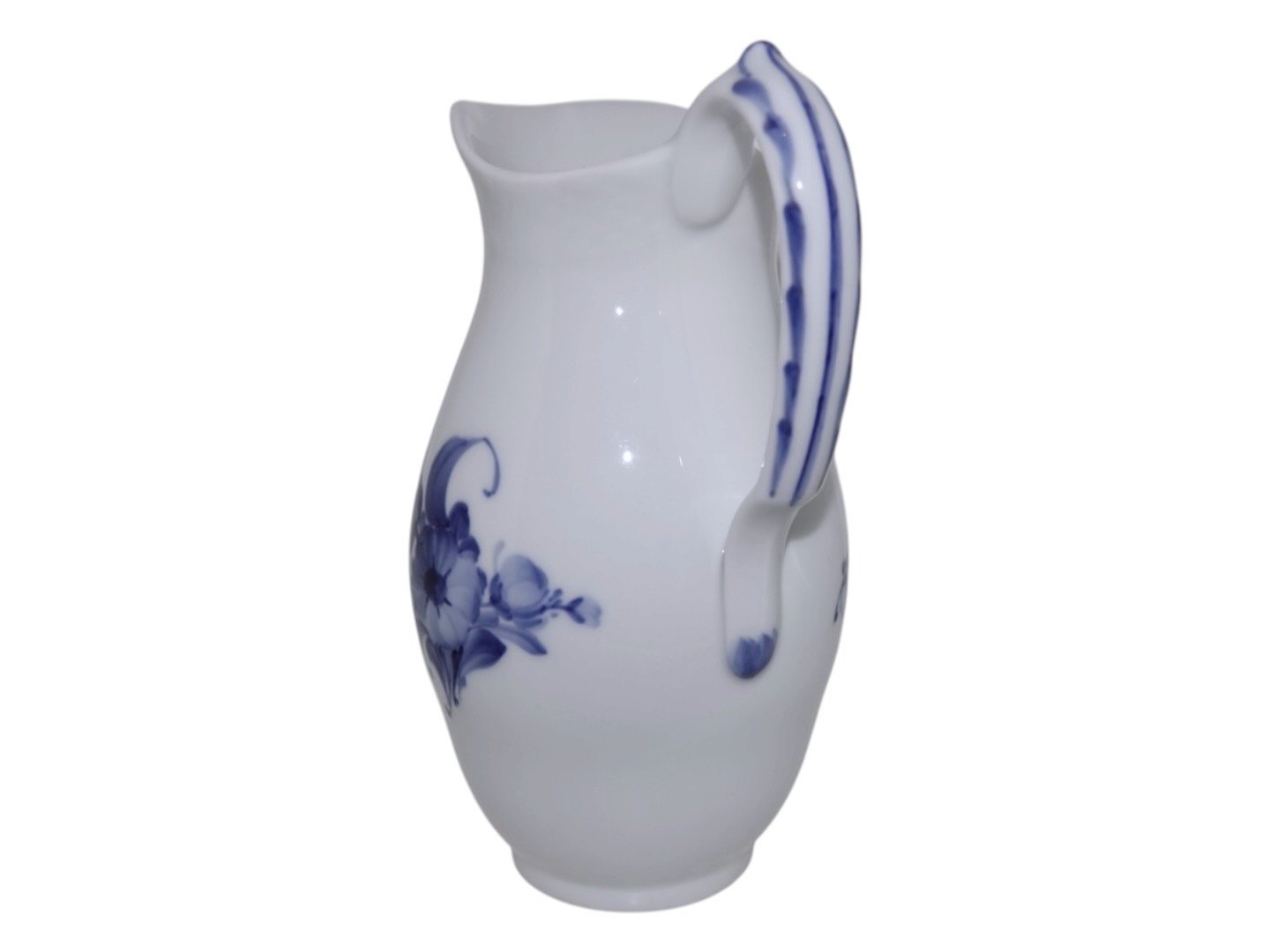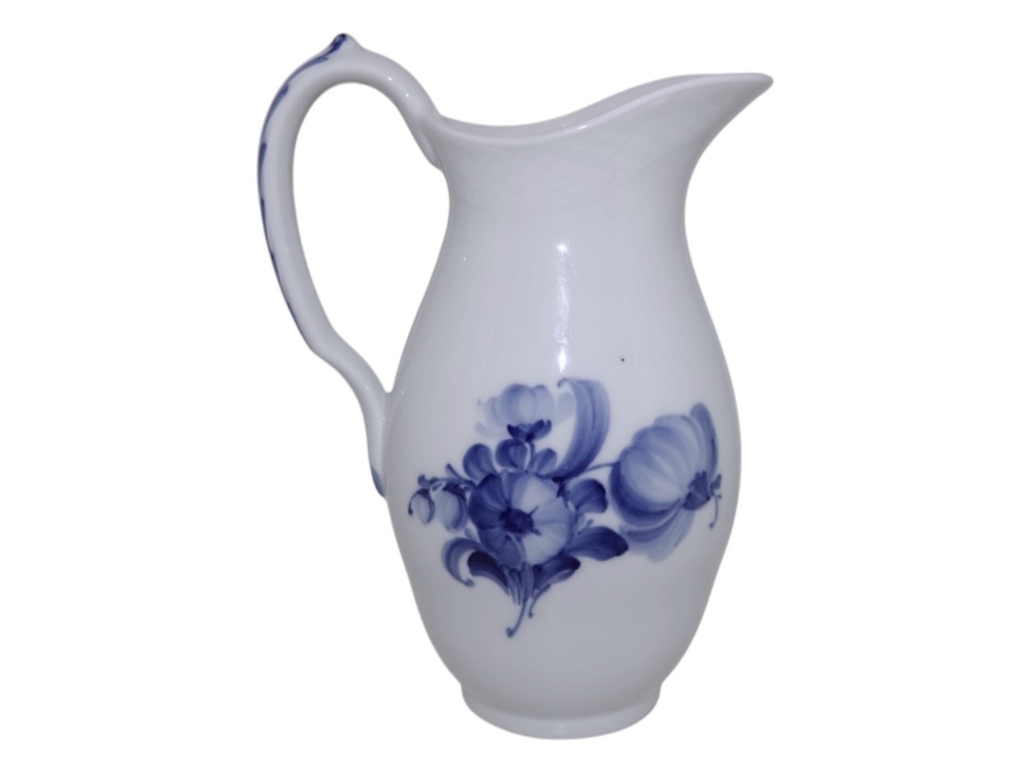 Royal Copenhagen Blå Blomst Flettet, stor mælkekande.Af fabriksmærket kan det udledes, at denne er produceret i mellem 1898 og 1923.