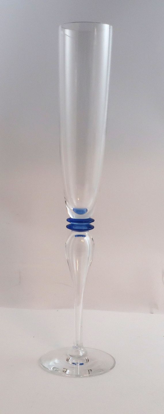 Attika, Royal Copenhagen mit blauem Dekor. Design Anja Kjär. Champagnerglas. Höhe 29 cm. Händler