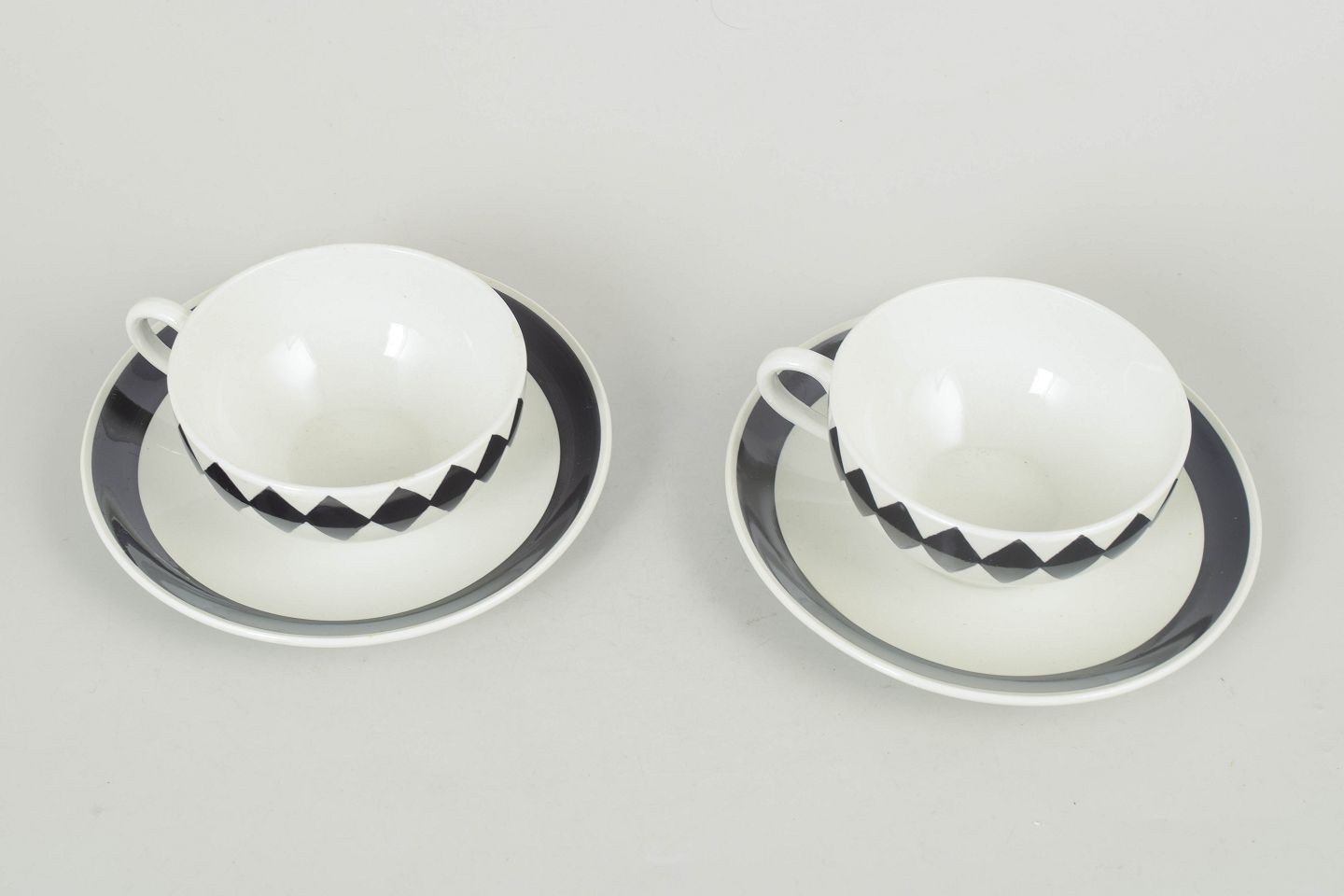 Karin Björquist for Gustavsberg, tekopper med underkopper “Svart Ruter”.Beschreibung:
