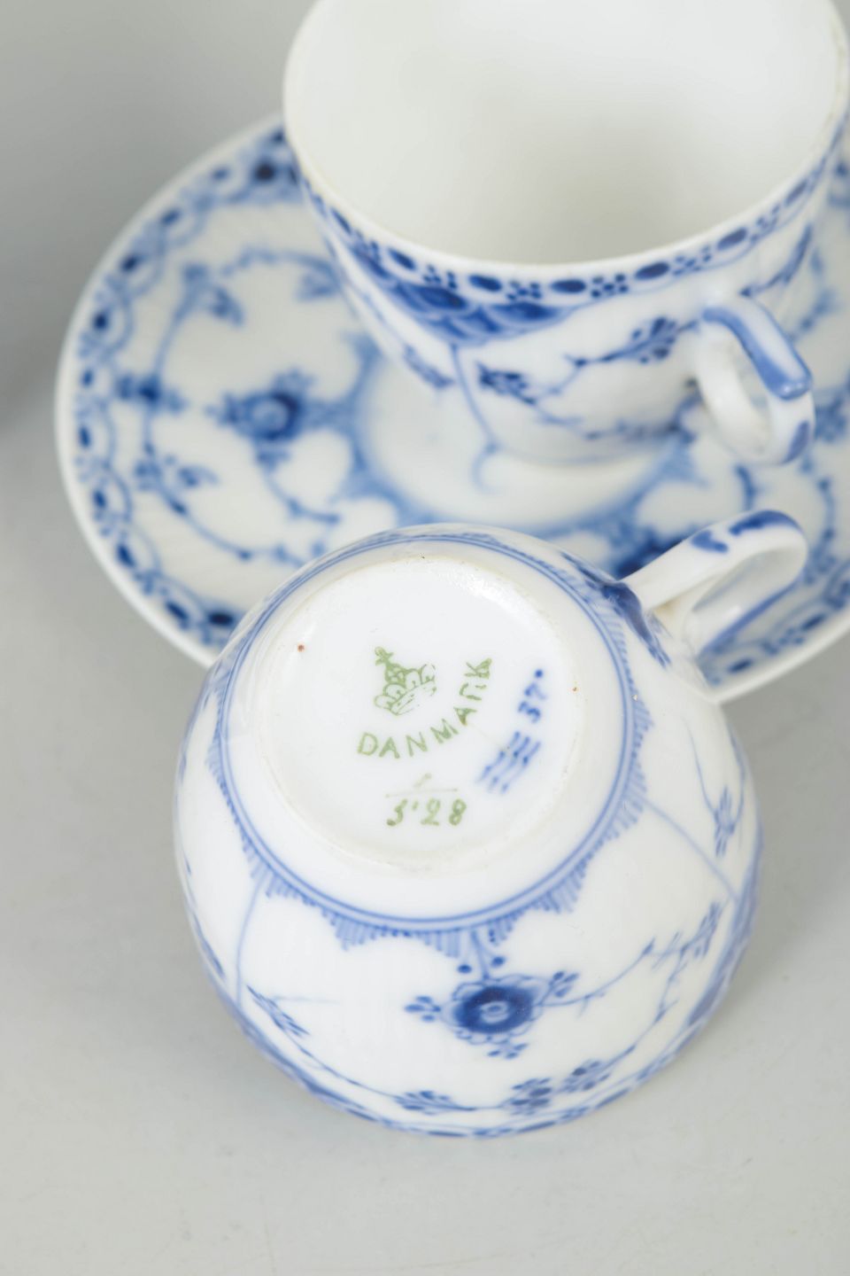 Royal Copenhagen Musselmalet Halvblonde, sæt af fire kaffekopper med underkopper.Beschreibung: