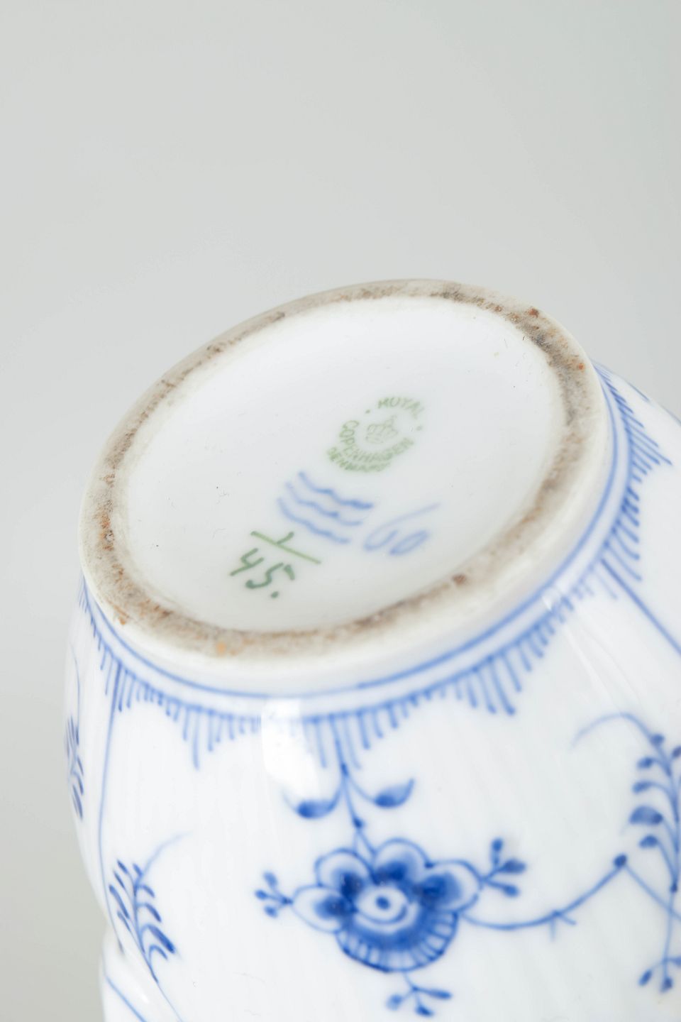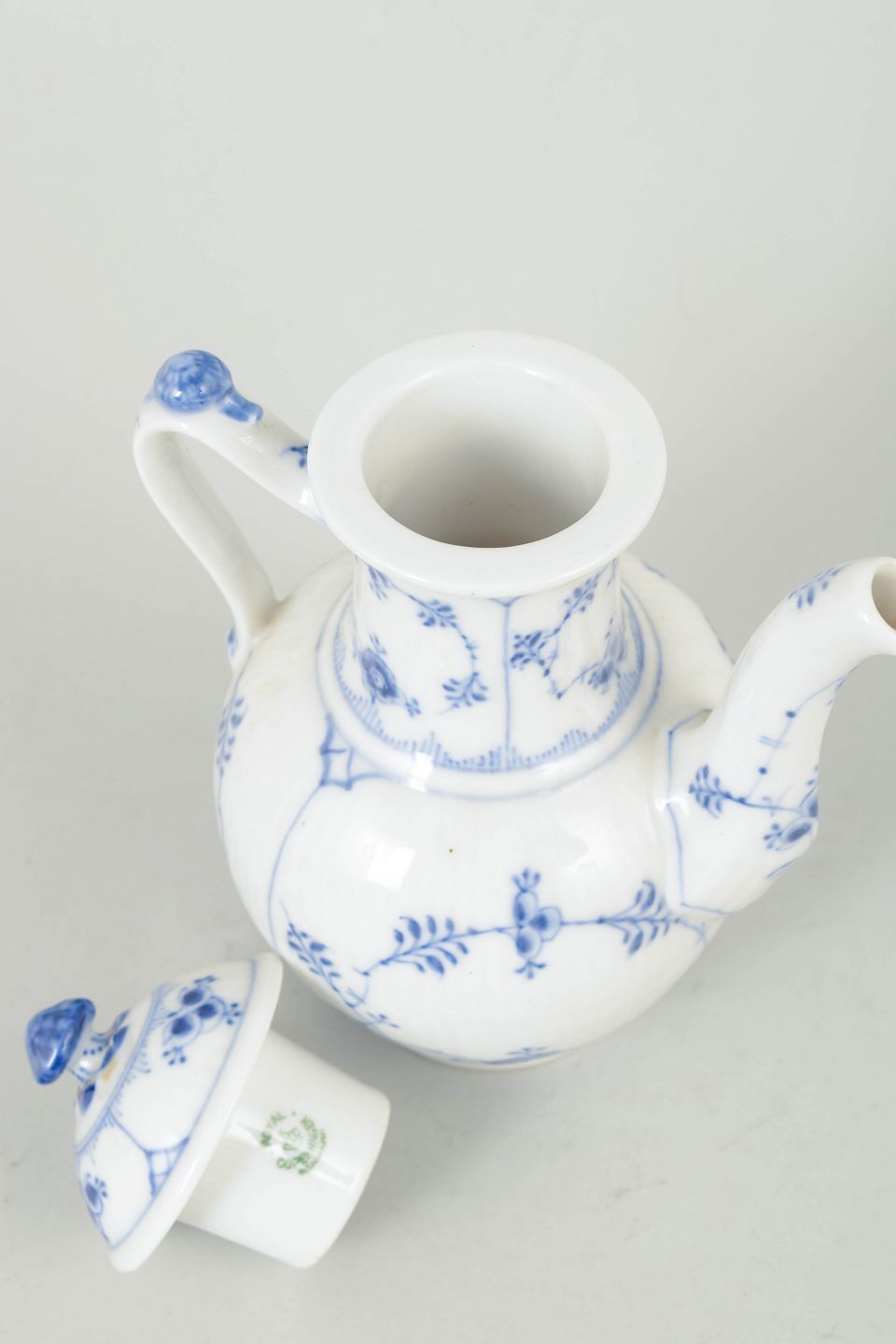 Royal Copenhagen Musselmalet Riflet, espressokande.Håndmalet espressokande i porcelæn med klassisk musselmalet riflet dekoration, model 1/45, første sortering.