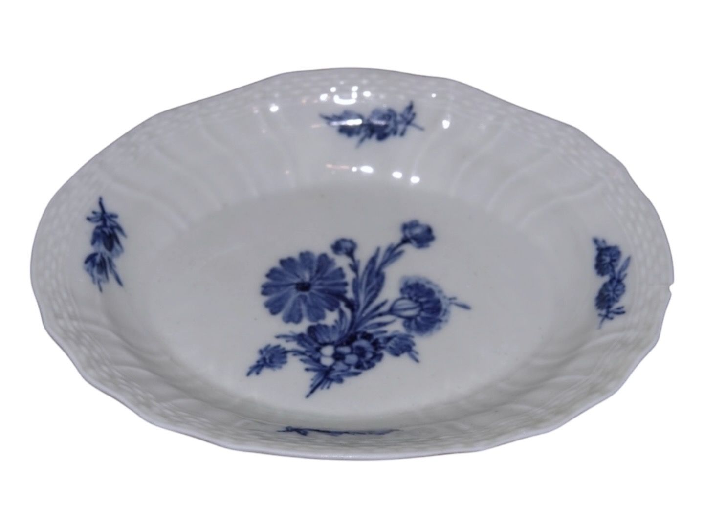 Blå Blomst SvejfetLille halvdyb asiet 18,9 cm. fra ca. 1790-1810