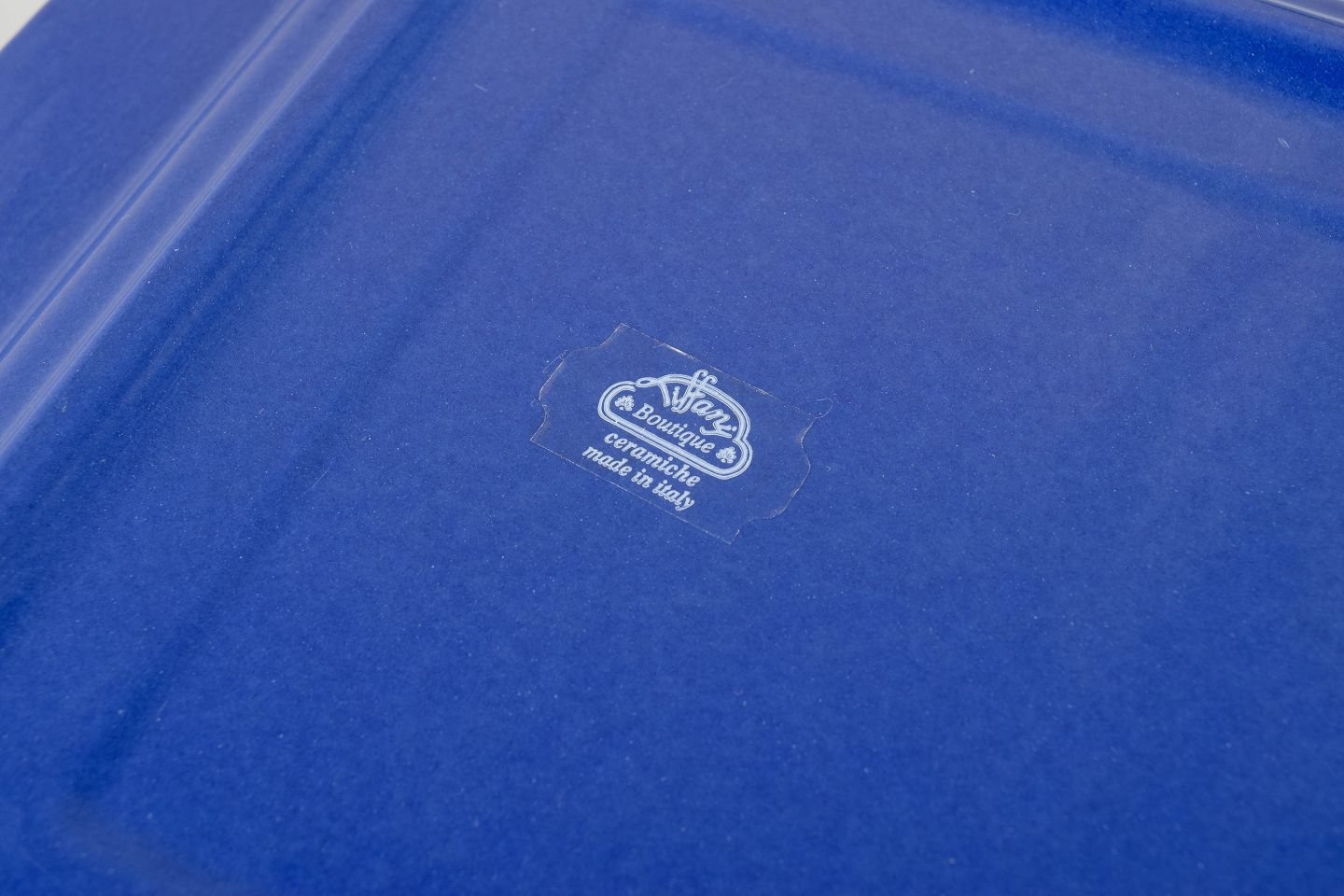 Tiffany Boutique, sæt af tre store tallerkner.Enkelt og elegant sæt i keramik bestående af tre store firkantede tallerkner med ensartet dyb blå glasur.