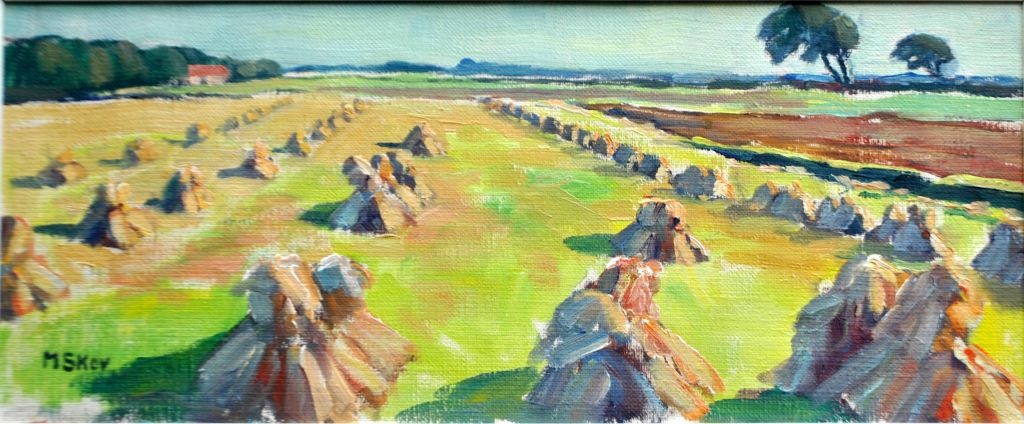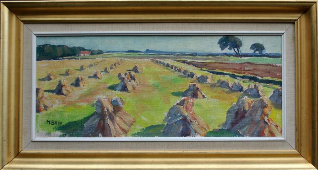 Skov, Marius (1885–1964) Dänemark: Heuhaufen. Öl auf Leinwand. Signiert. H: 30 cm. B: 71 cm.Gerahmt: H: 49 cm. B: 90 cm.
