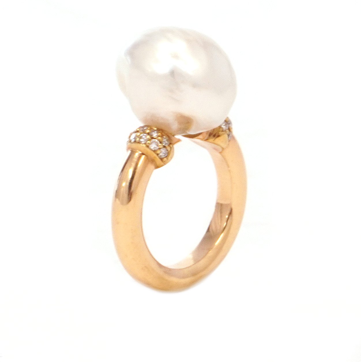 Benny Holmsted, Kopenhagen, 1989-2001, Ring aus 14kt Gold mit PerleRinggr. 50