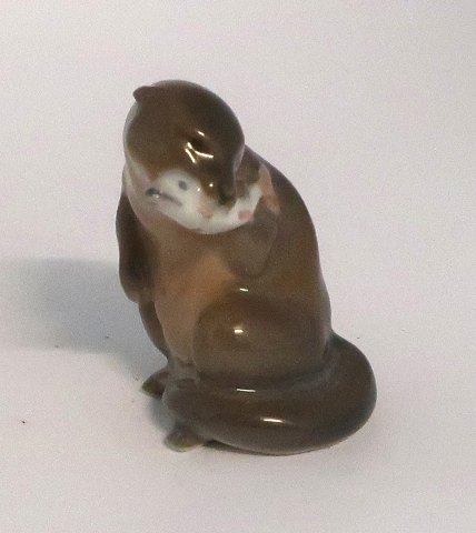 Royal Copenhagen. Porzellanfigur. Otter mit Fisch.