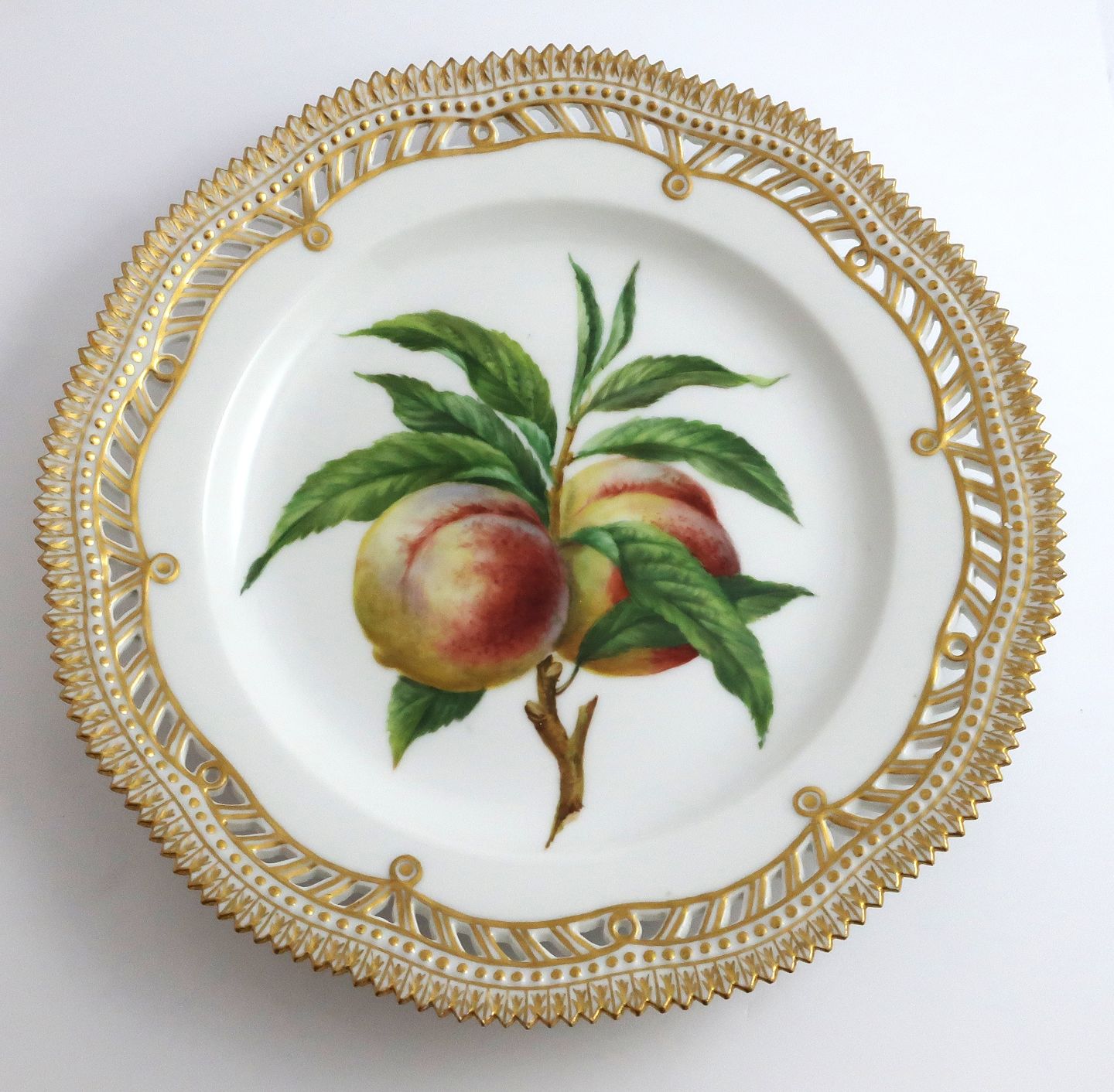 Royal Copenhagen Flora Danica, Obstteller. Mittagessen Platte mit durchbrochener kante. Entwurf # 429/3554. Durchmesser 23 cm. (1 Wahl).