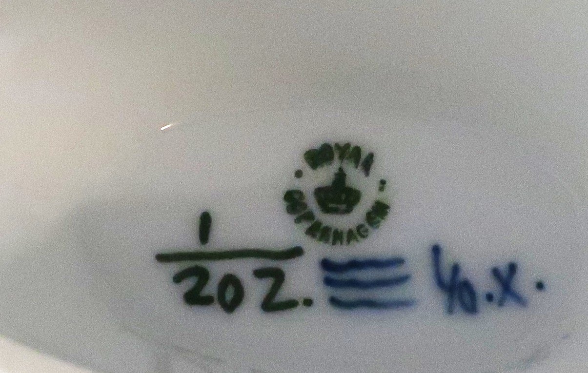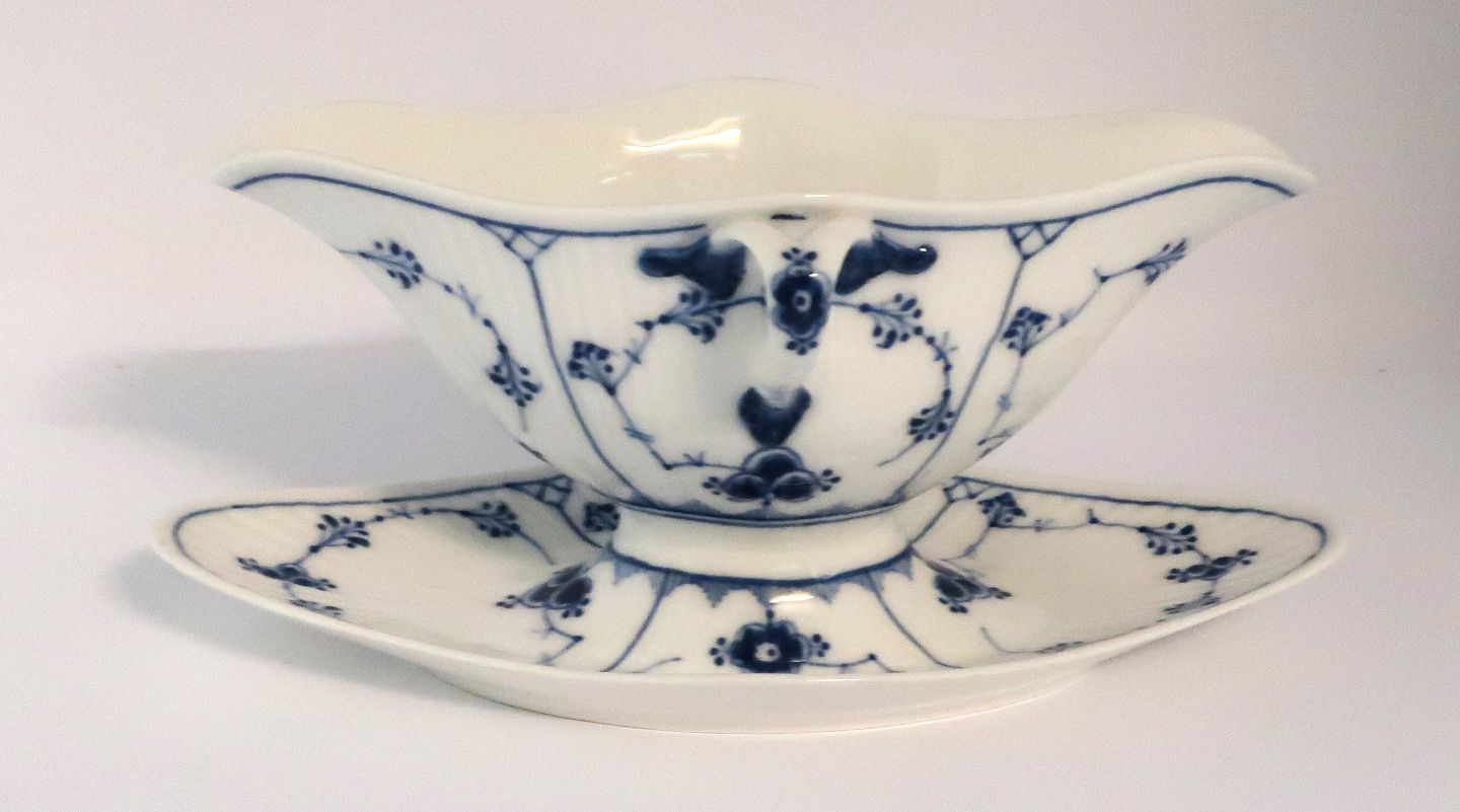 Königliches Kopenhagen. Musselmalet, Gerippt. Saucenschüssel. Modell 202. Länge 24,5 cm. (1 Wahl). Hergestellt vor 1923.