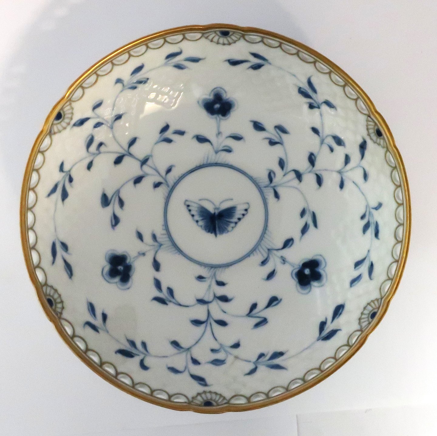 Bing & Gröndahl. Butterfly with gold. Round bowl with openwork edge. Diameter 20 cm. Height 5 cm. (1 quality).