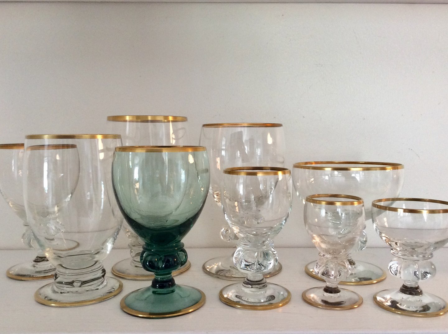 Holmegaard, Gisselfeld, Rotwein mit Goldrand, 13 cm hoch, 7 cm Durchmesser, Design Jacob E. Bang *Guter Zustand*
