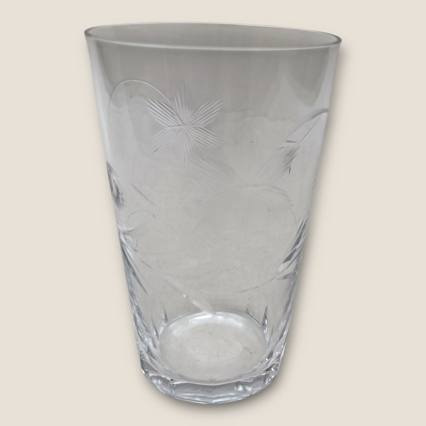 Wasserglas mit eingeschnittenem Blumenmotiv, 12cm hoch, 7,5cm Durchmesser *Perfekter Zustand*