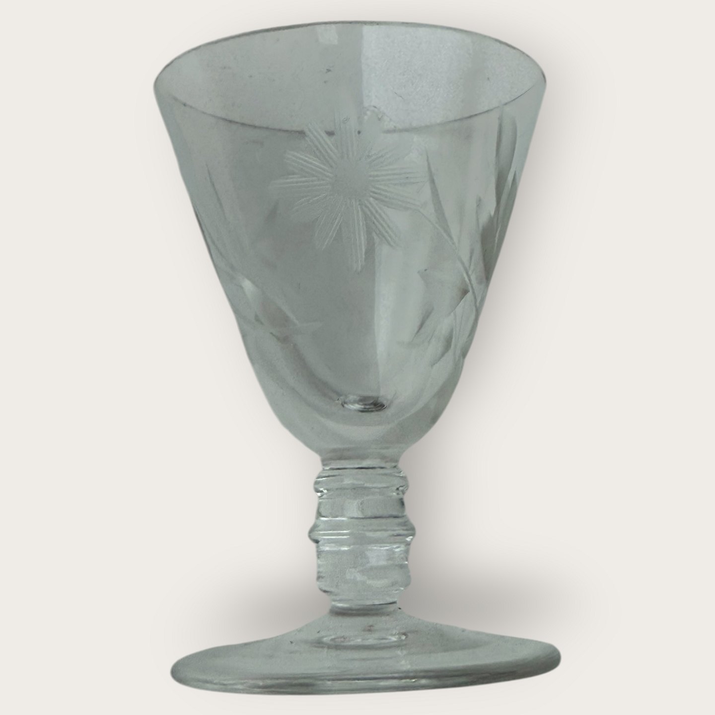 Schnapsglas mit Blumenschliff, Höhe 6,5 cm, Durchmesser 4,5 cm *guter Zustand*