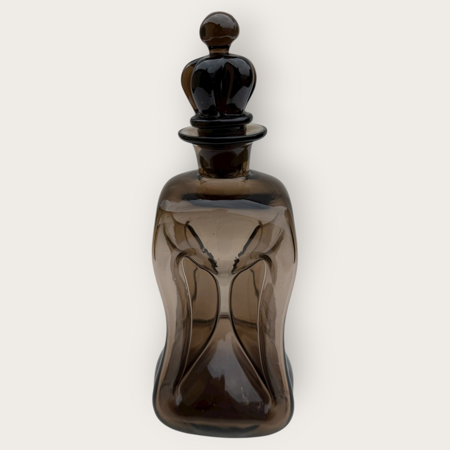 Holmegaard, Klirrflasche aus Braunglas und mit Kronkorken, Leichte Verschmutzungen im Boden, sonst guter Zustand, Maße: 26x10x10cm