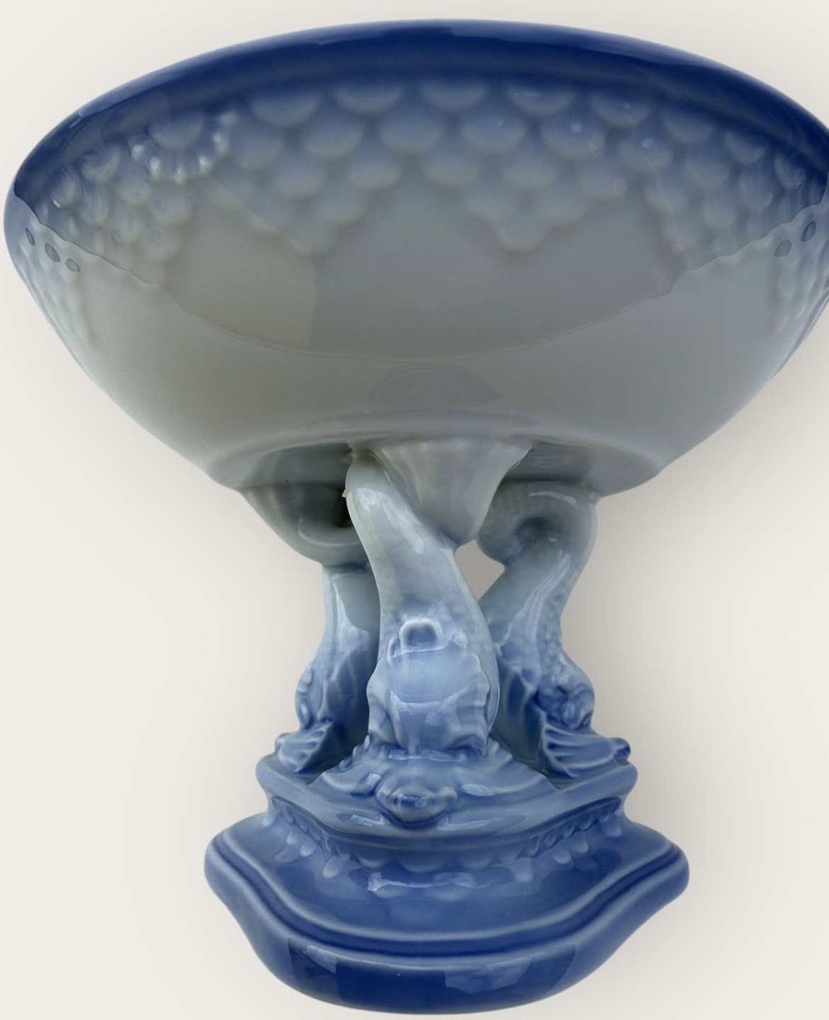 Bing & Grøndahl, Måge uden guld, Opsats med delfiner, 14cm i diameter, 10cm høj, 2.sortering, Design Fanny Garde *Pæn stand*