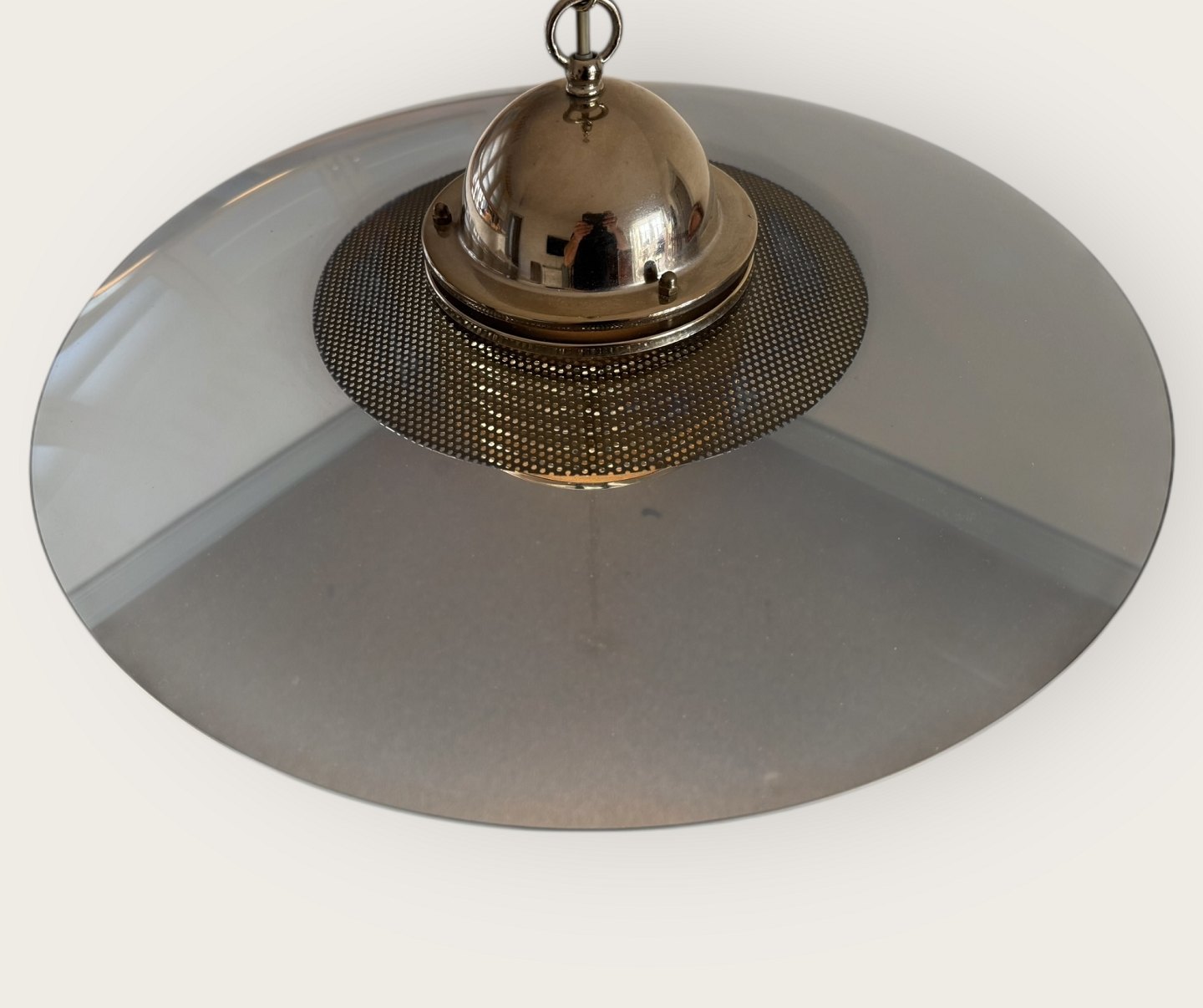 Jan-Eskild Eskildsson, Belid, Schweden, Reflektor-Deckenleuchte aus Rauchglas und Messing, Durchmesser 49 cm *guter Zustand*