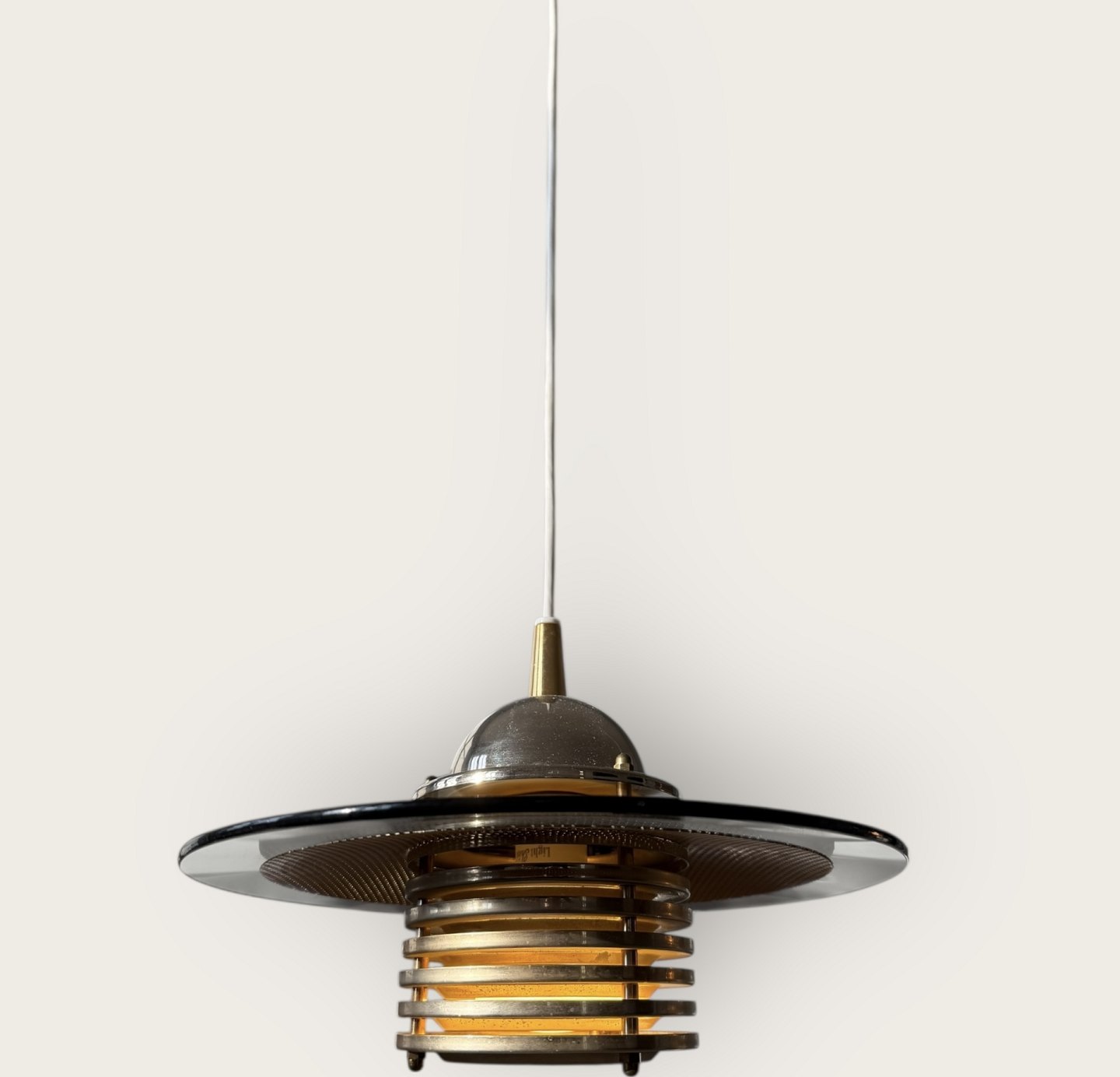 Jan-Eskild Eskildsson, Belid, Schweden, Reflektor-Deckenleuchte aus Rauchglas und Messing, Durchmesser 29 cm *guter Zustand*