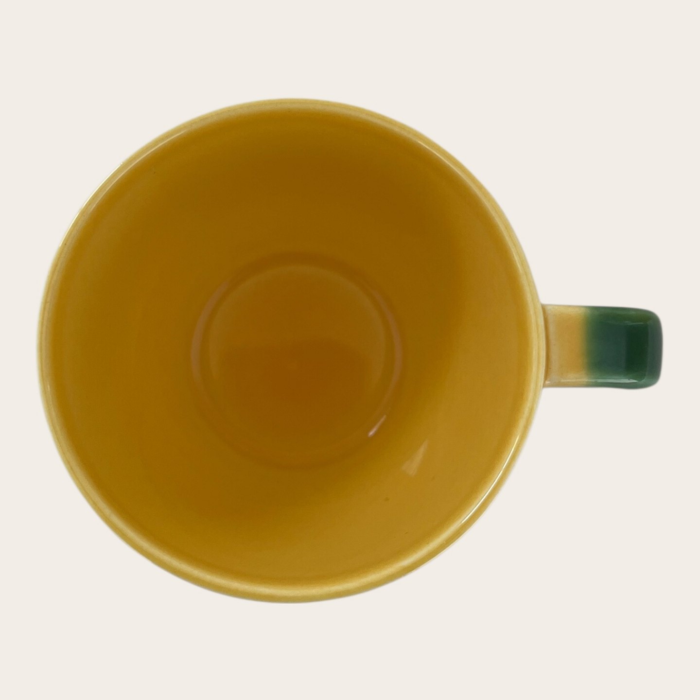 Royal Copenhagen, Aluminia, Ursula, Kaffeetasse Gelb/Grün Nr. 072, 1. Sortierung, 7 cm hoch, 10,5 cm breit, 8,5 cm Durchmesser, Design Ursula Munch Petersen *Guter Zustand*