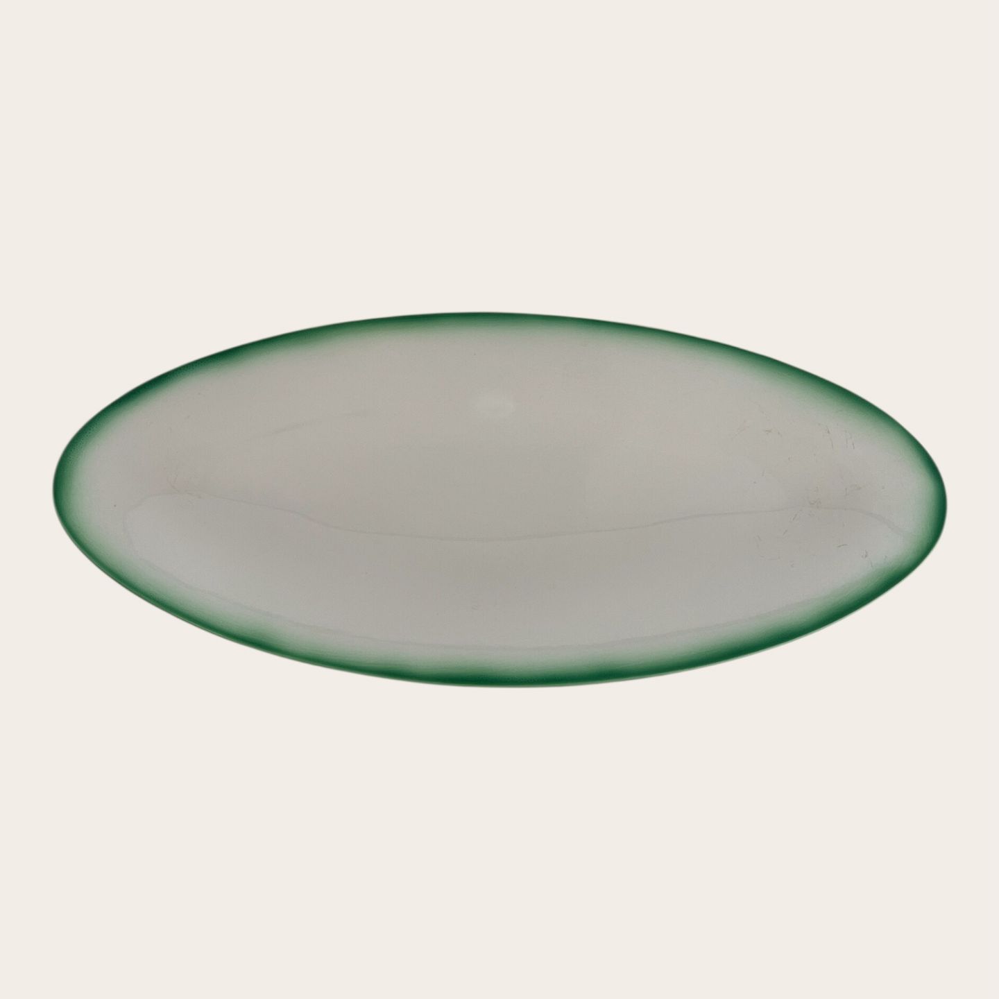 Royal Copenhagen, Aluminia, Ursula, Große Schale, Grün/Weiß Nr. 375, 1. Sortierung, 57,5 cm lang, 26 cm breit, Design Ursula Munch Petersen *Guter Zustand mit leichten Gebrauchsspuren*