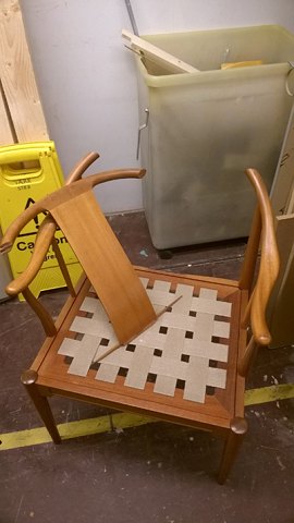 „China Chair“ von Hans J. Wegner, die wir repariert haben, nachdem die Rückenlehne des Stuhls gebrochen war.