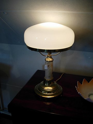 Die Lampe besteht aus bronziertem Messing, das der Lampe einen subtilen und warmen Ton verleiht, der das weiße Opalglas ergänzt. Brüniertes Messing ist eine Oberflächenbehandlung, die einen leicht vintageartigen Look verleiht, der zum Vintage-Charme der Lampe beiträgt.