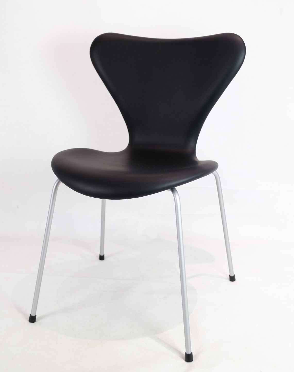 Ein Set aus 6 Seven-Stühlen, Modell 3107, entworfen von Arne Jacobsen im Jahr 1967 und hergestellt von Fritz Hansen. Die Stühle sind neu mit schwarzem Elegance-Leder bezogen.