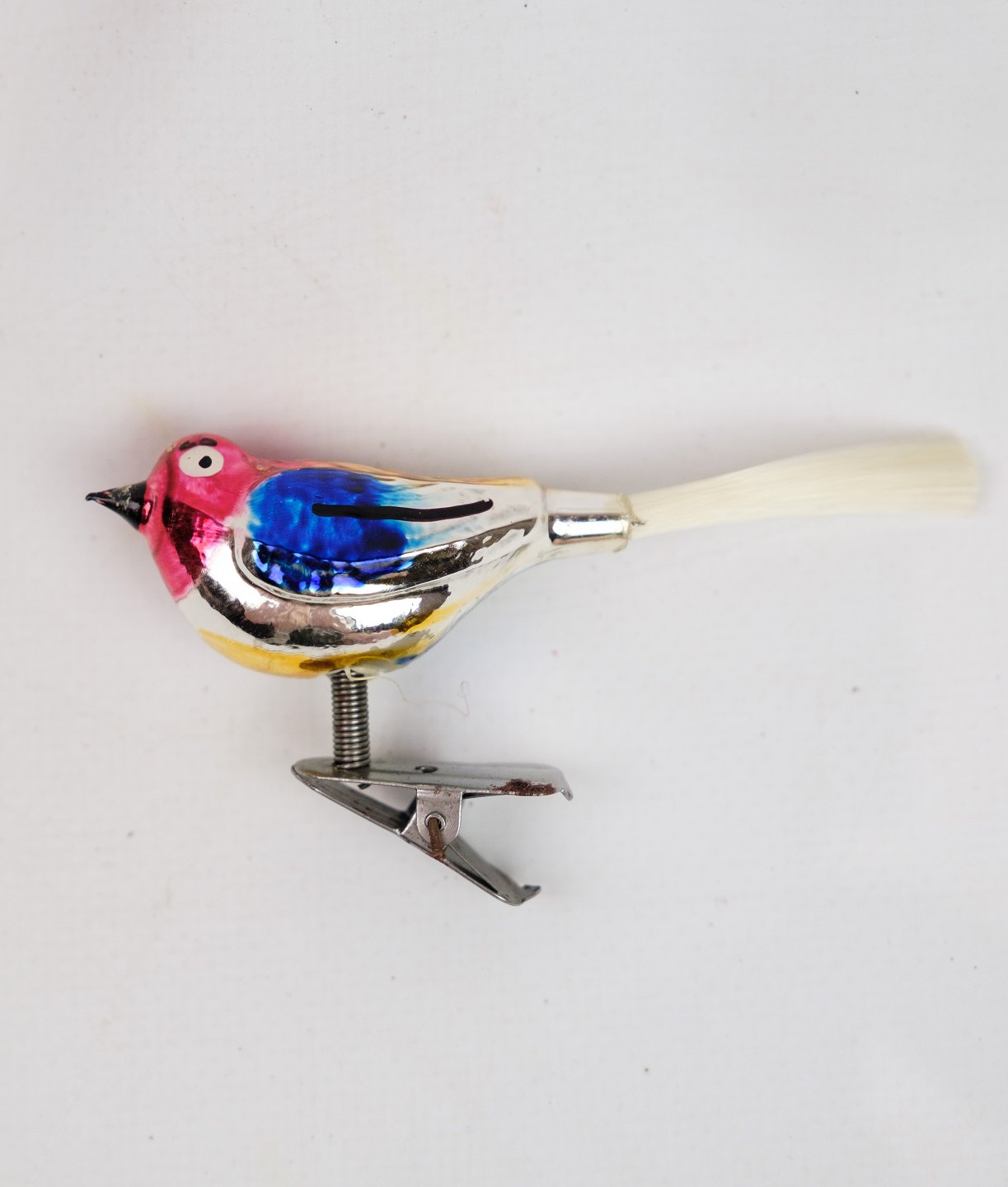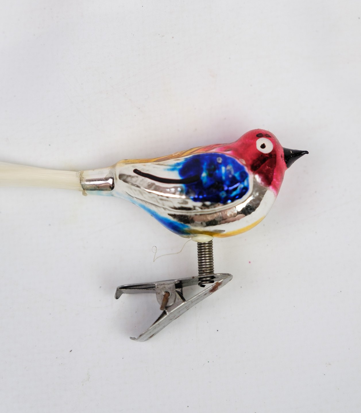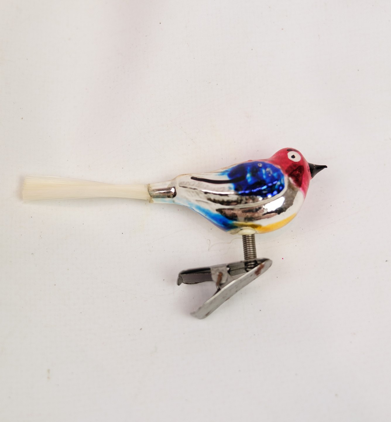 Alter Weihnachtsschmuck in Form eines handbemalten Glasvogels aus den 1930er Jahren.